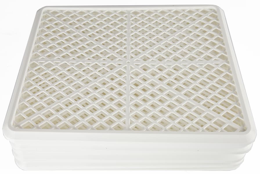 Отдельно скажем пару слов о материале, из которого сделаны поддоны. Не секрет, что стандартный прозрачный (или полу-прозрачный) пластик, который нередко применяется при изготовлении поддонов для дегидраторов, имеет свойство высыхать и крошиться через год-два эксплуатации.
