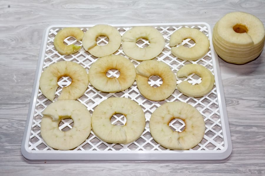 Примерно за 6,5 часов наши яблоки высохли ровно до нужной нам консистенции: сухие, но довольно мягкие, не пересушенные.