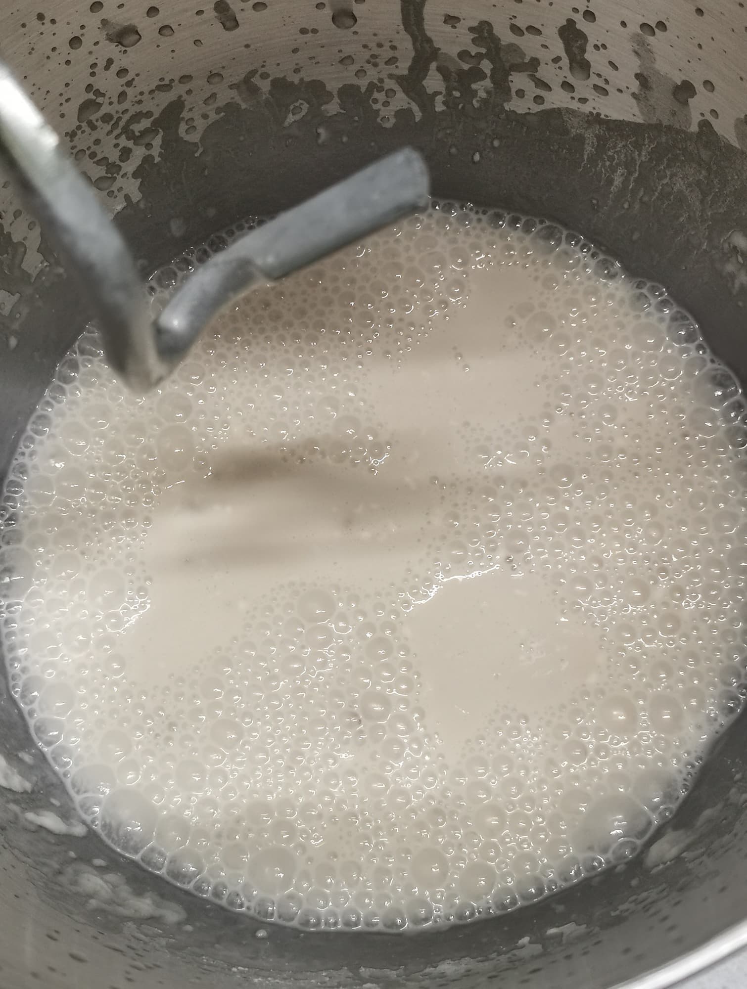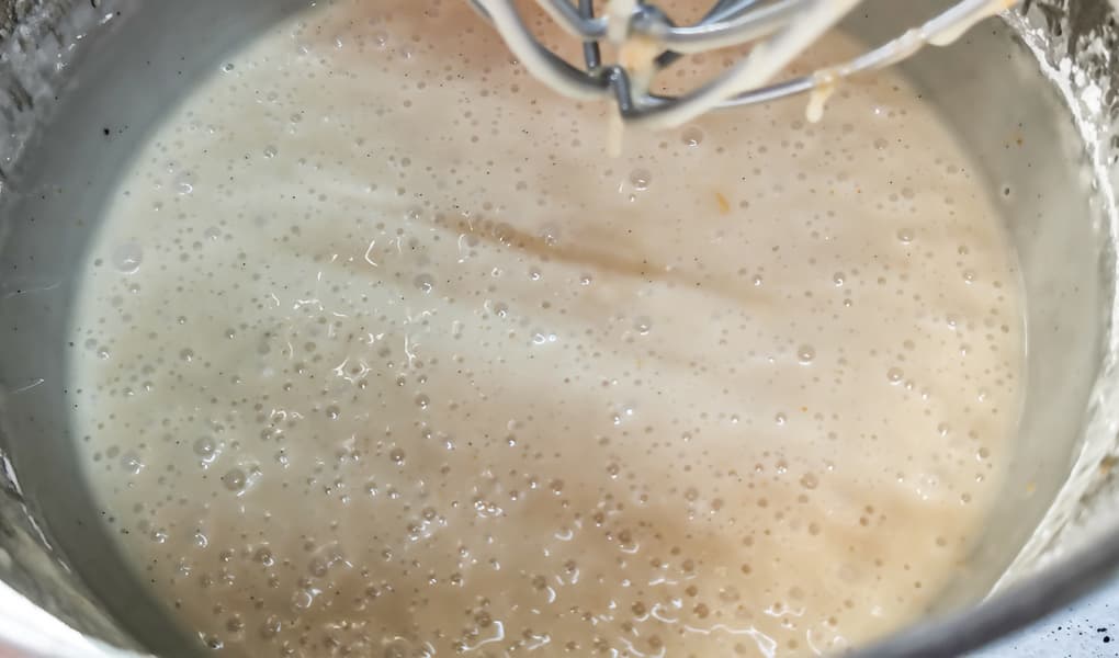 В чаше миксера развели закваску из дрожжей, сахара, муки и воды. Оставили на час, включив режим подогрева.