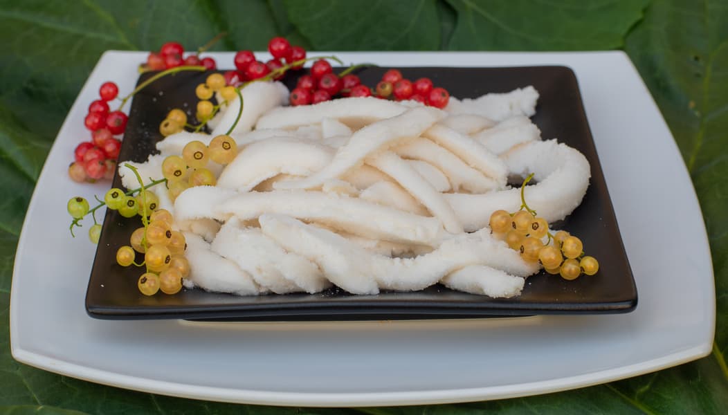 После того, как масса застыла, ложкой снимали длинную полоску с поверхности и обваливали в сахарной пудре.