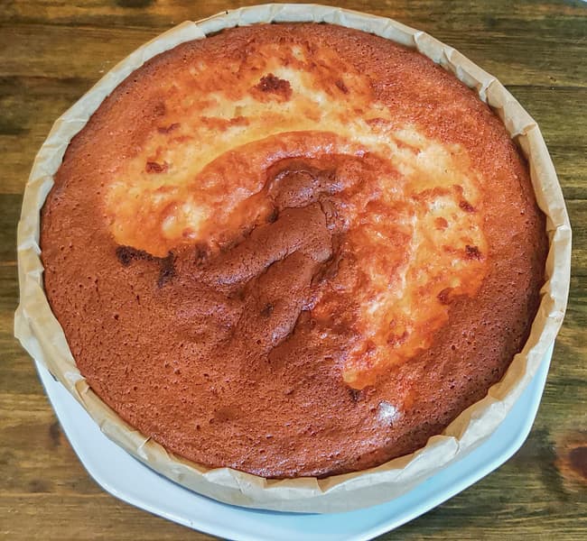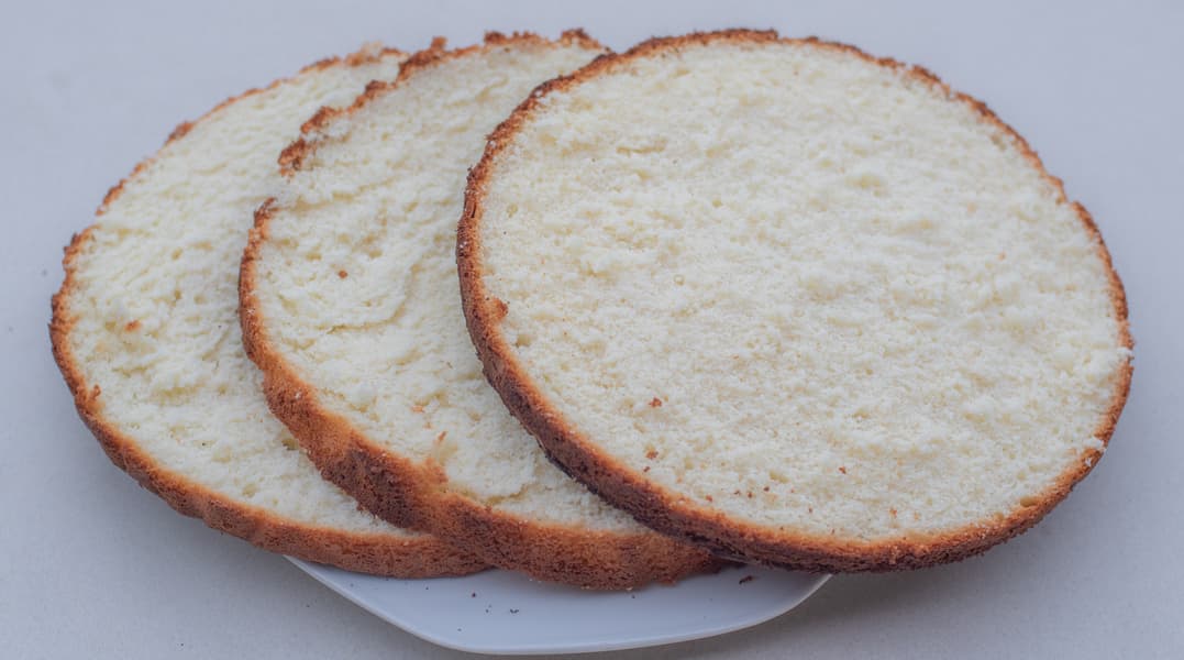 Взбивали сначала на 4, затем на 6 скорости в течении 6 минут. В получившуюся воздушную массу ввели муку, аккуратно размешав с взбитыми яйцами.