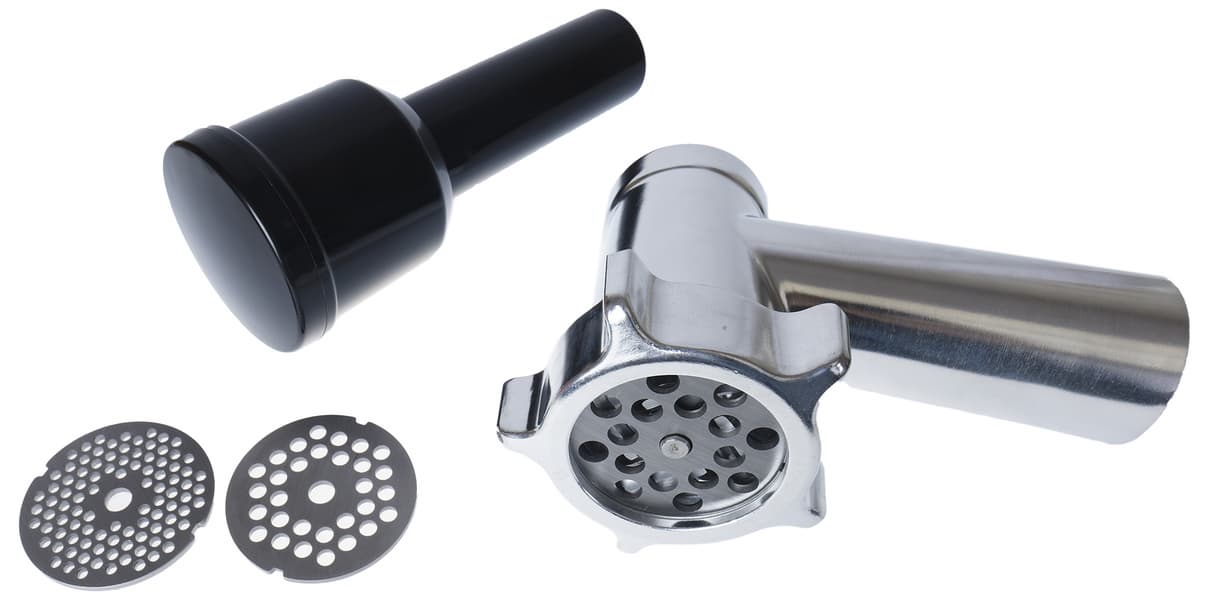 Насадка-мясорубка является дополнительной опцией и в основной комплект не входит. Несмотря на это, она может заменить полноценную мясорубку, так как справляется с приготовлением большого объёма фарша из нежилистого мяса за вполне конкурентное время.