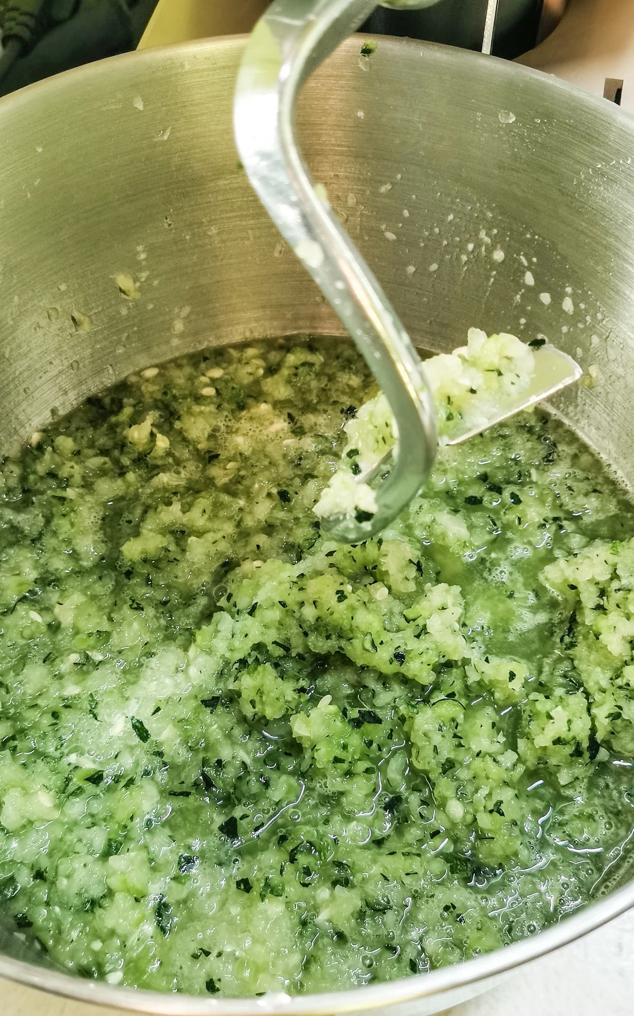 За 10-15 минут мы на средней скорости нарубили около 2 кг кабачковой массы.