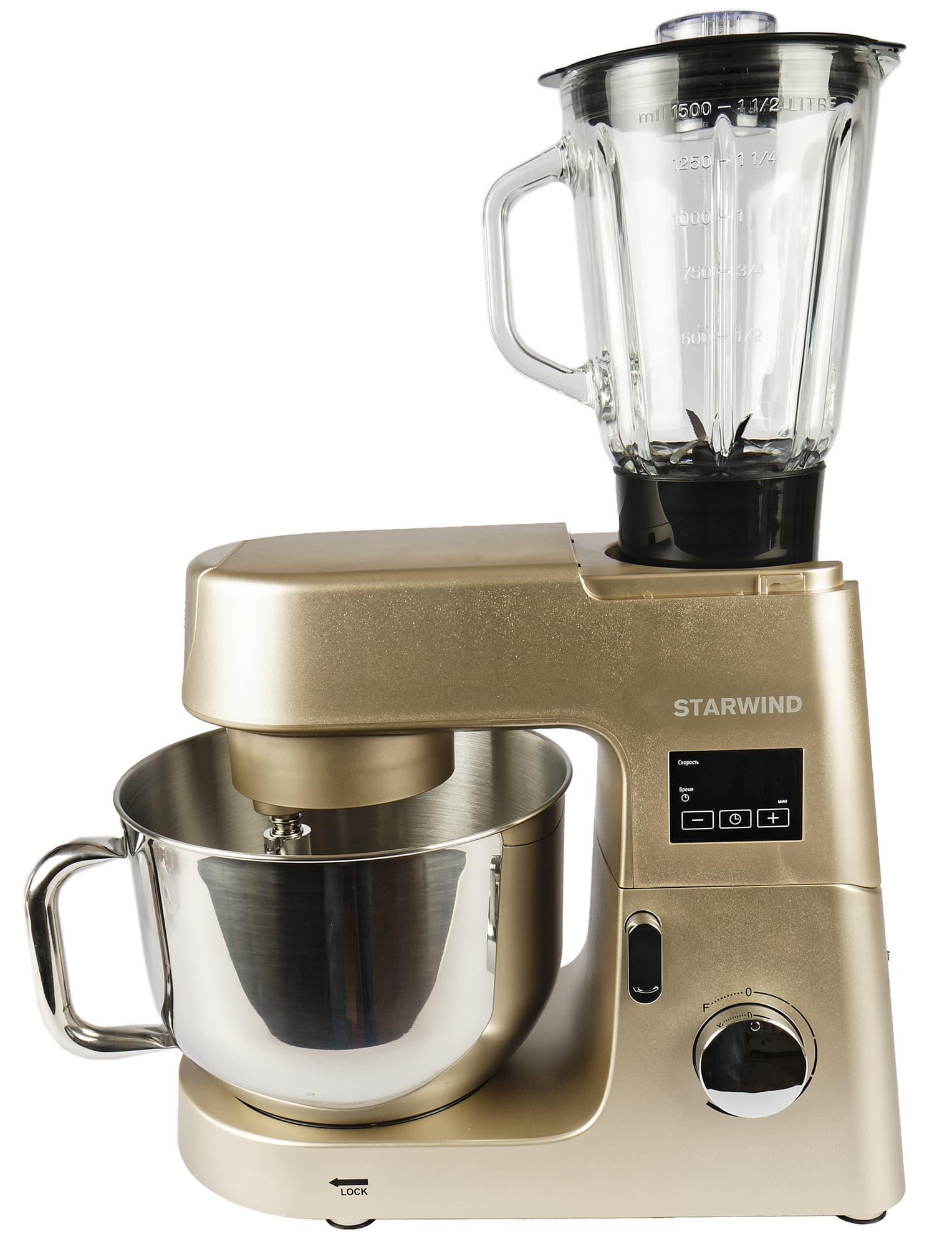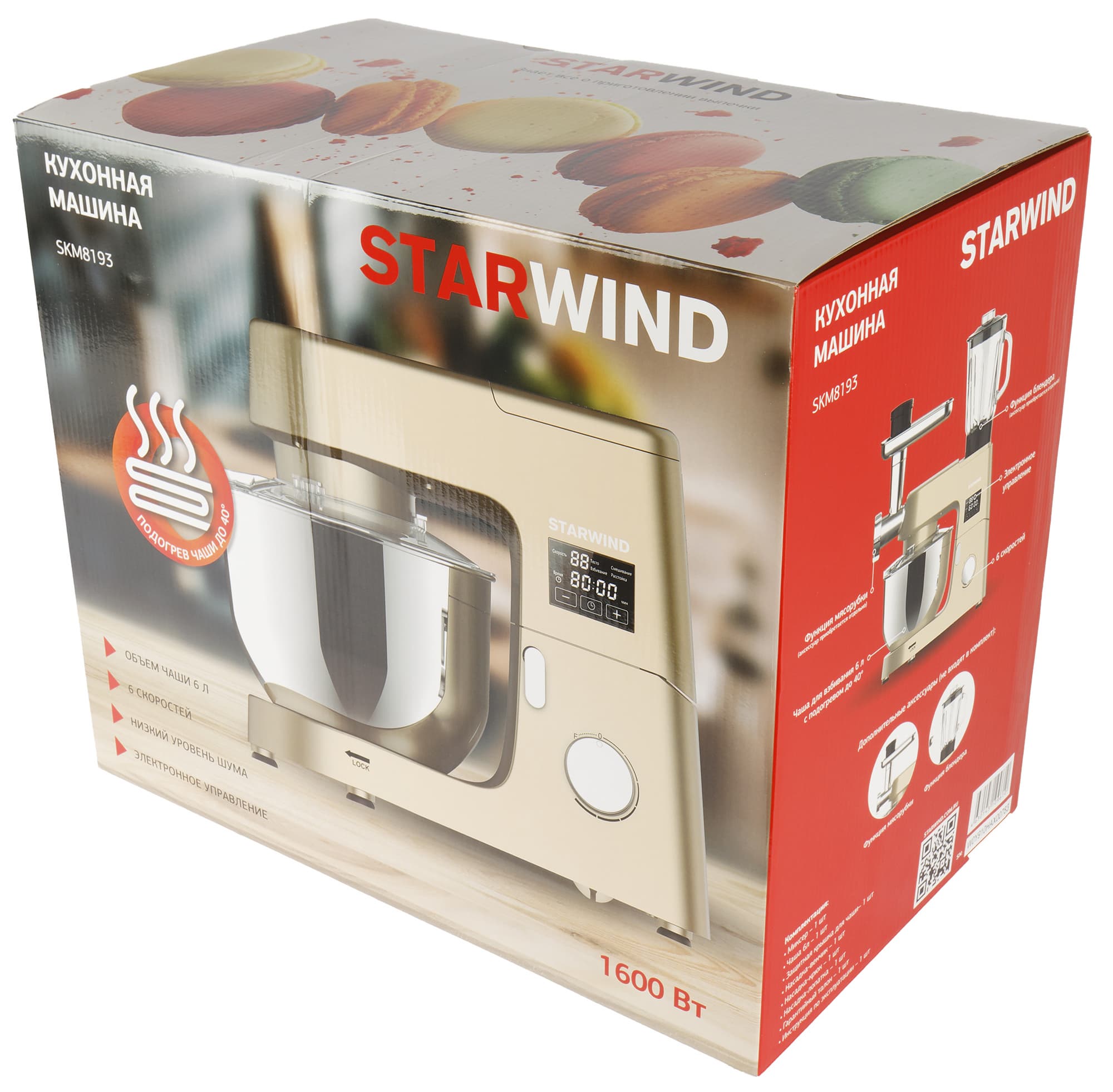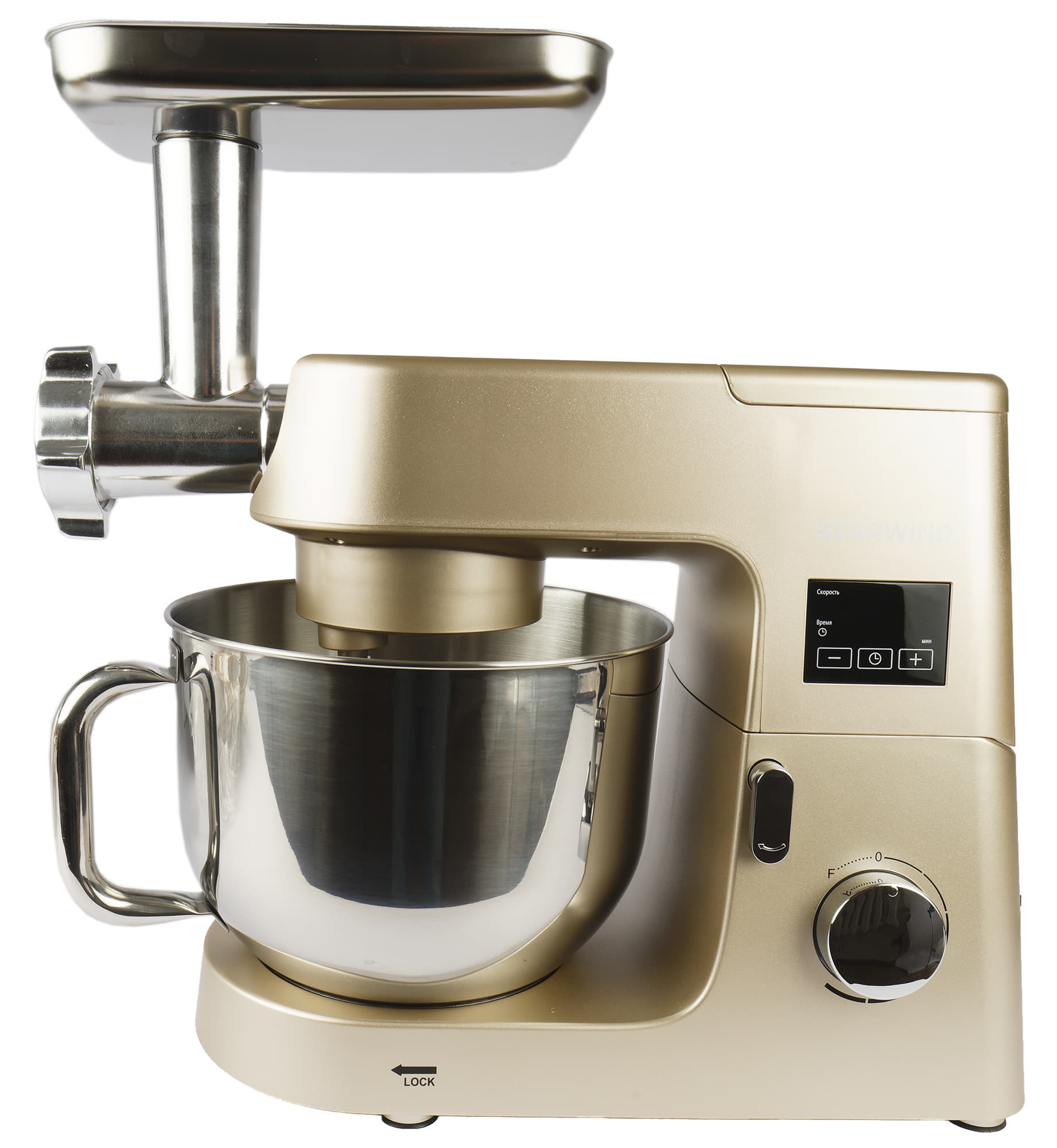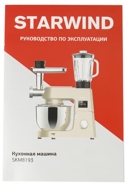 Кухонная машина Starwind SKM8193 — многофункциональный кухонный прибор, способный не только взбивать, вымешивать и готовить тесто, но и с помощью дополнительных насадок превращаться в мясорубку или стационарный блендер.