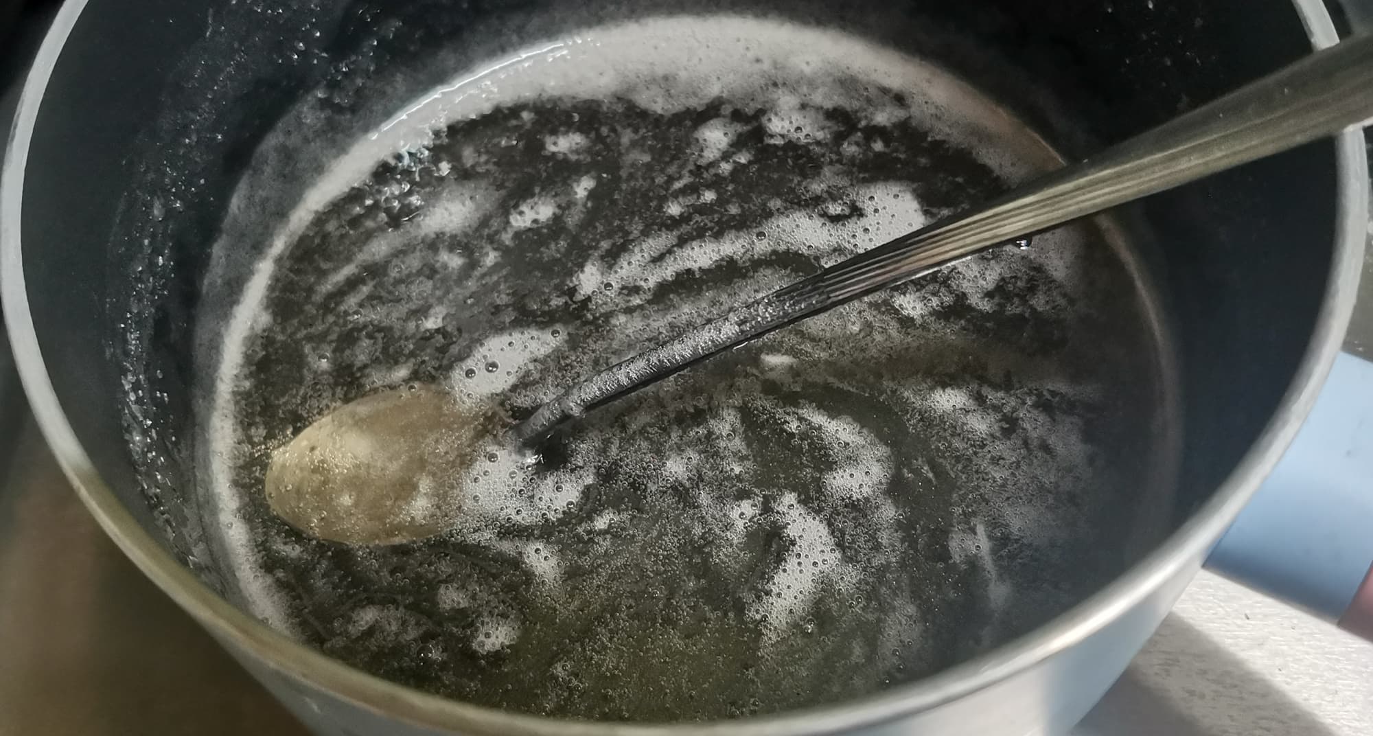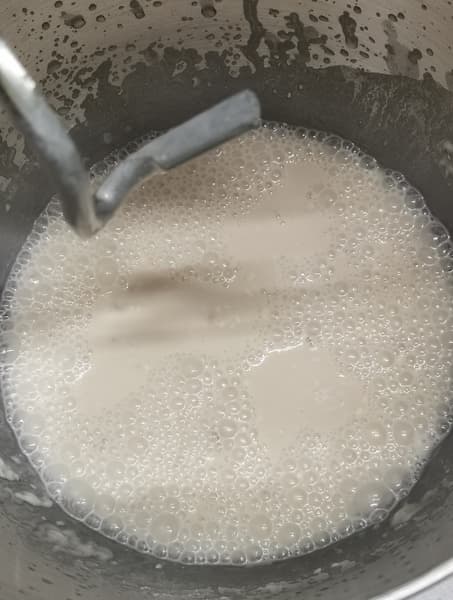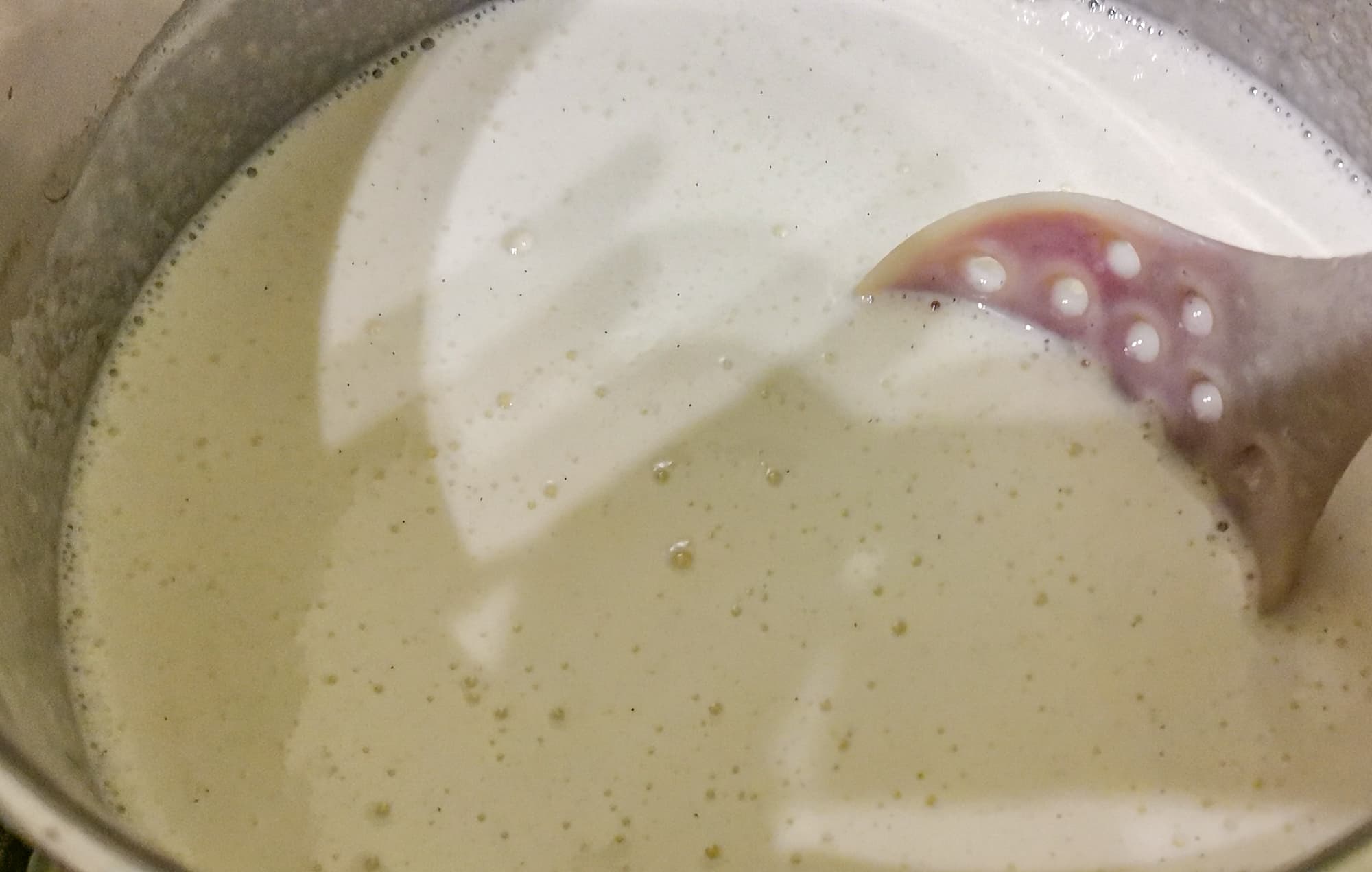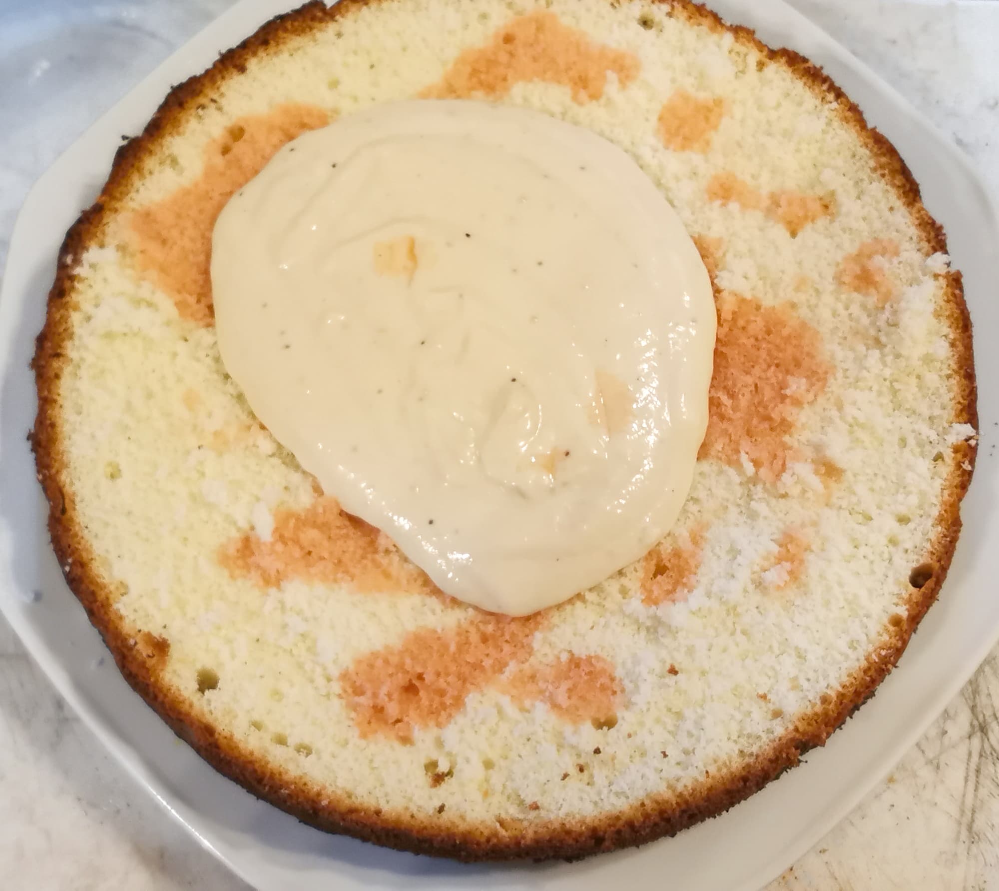 Пока готовился бисквит, сделали заварной крем из молока, муки и яиц.