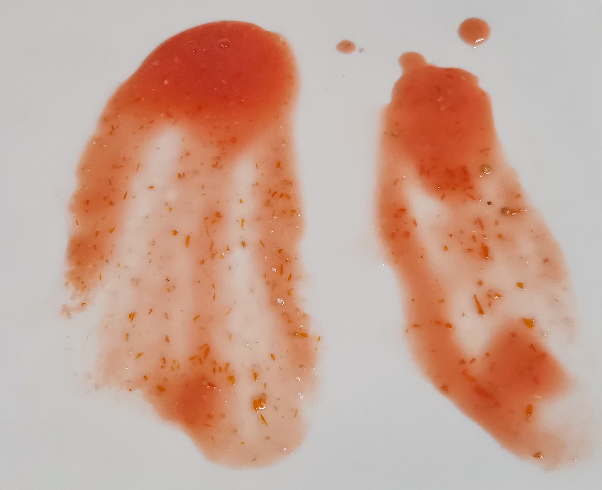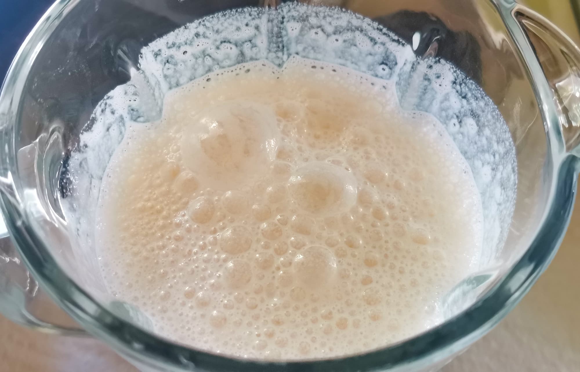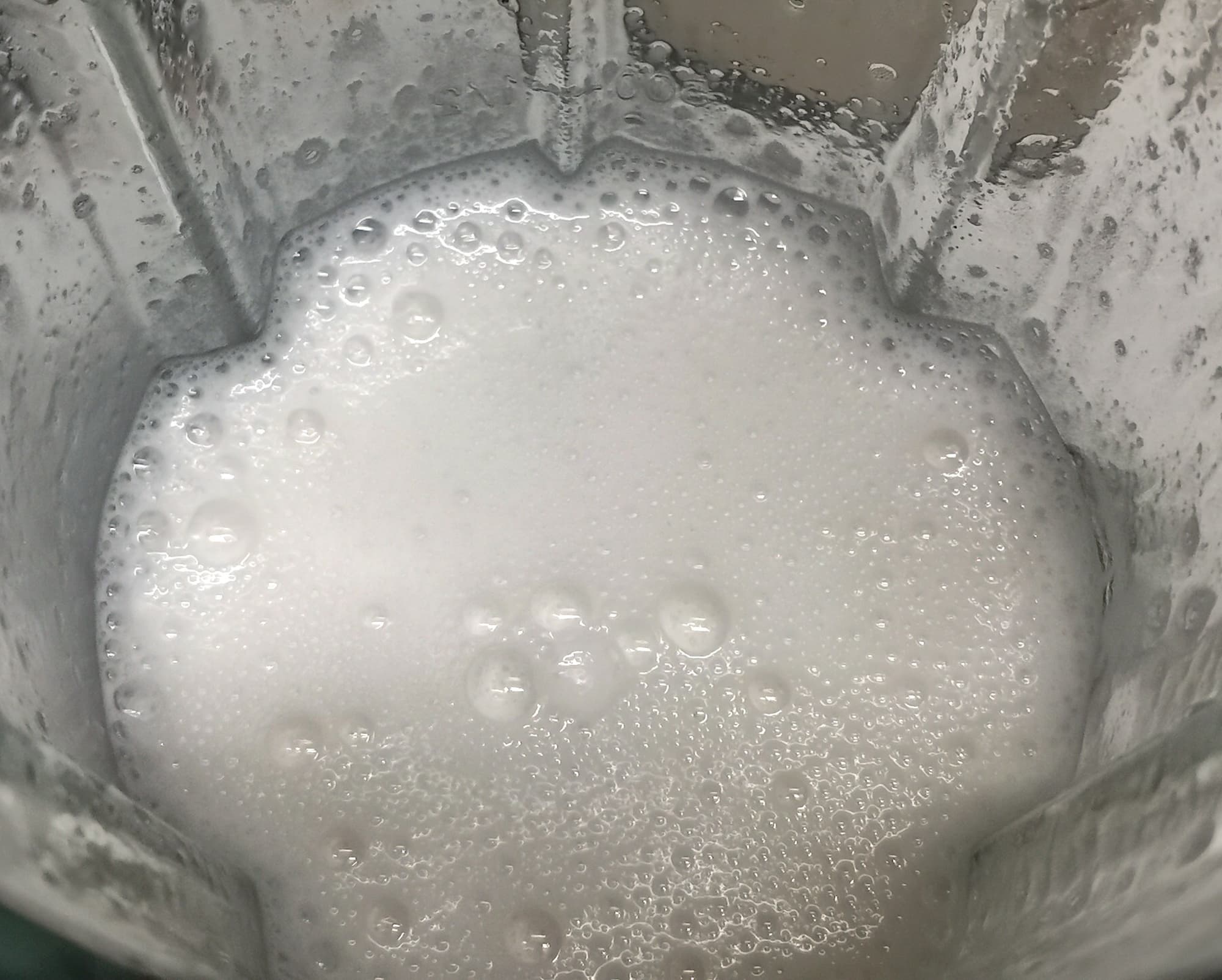 Выложили в блендер и прокручивали на скорости 6 в течении 30 секунд. Получили воздушную смесь с малым количеством фрагментов семян и кожицы. Поставили на Starwind SKM8193 и прокрутили на 6 скорости ещё 30 секунд.