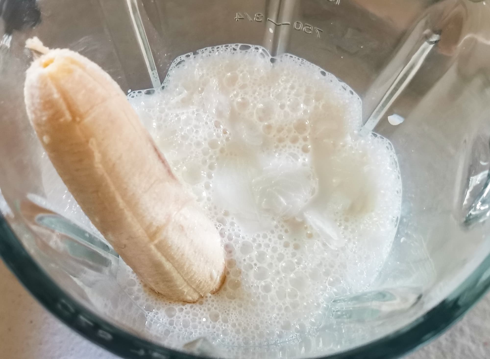Для коктейля в молоко положили банан и ваниль, прокрутили на скорости 6 в течении 20 секунд.
