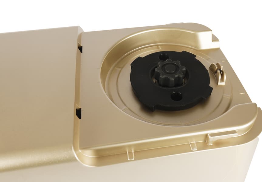 Гнездо крепления блендера пластиковое, оборудованное встроенной защитой – прибор не включится, если крышка не закрыта, а блендер не присоединён к гнезду. Чаша блендера фиксируется на корпусе поворотом до вщёлкивания.