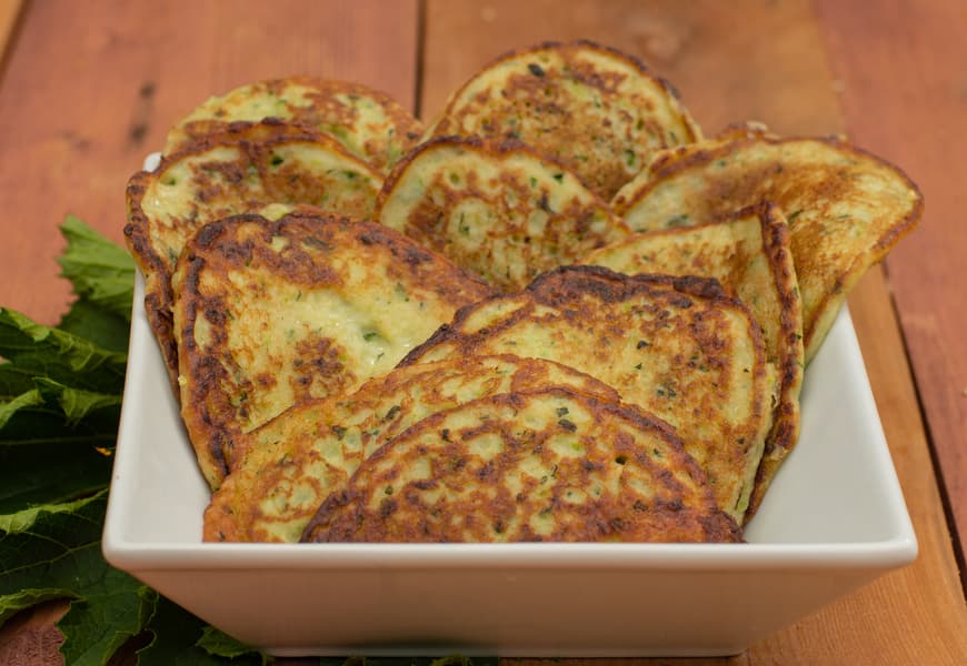 Для того, чтобы сделать кабачковые оладьи, мы прокрутили свежие кабачки через мясорубку. Овощи пришлось резать достаточно мелко, чтобы кусочки смогли подхватиться шнеком. Если мясо не приходилось дожимать толкателем, то в случае с кабачками он пригодился.