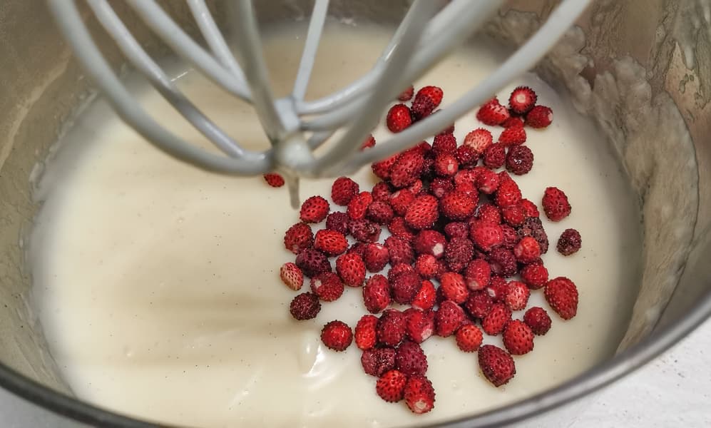 Выложили его в чашу миксера, взбили, добавили землянику и сливочное масло.