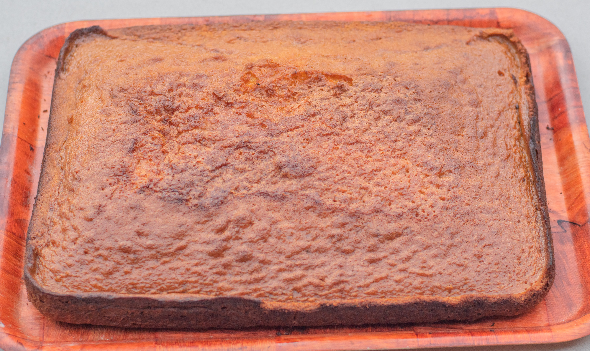 Влили в чашу со взбитыми яйцами полстакана отжатого цитрусового сока (лимона и апельсина), взбили. Затем влили полстакана растительного масла. Взбили. Получившееся тесто поместили в форму.