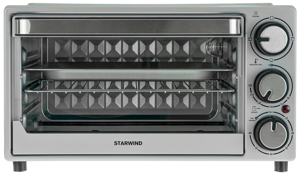 У нас на тестировании электрическая печь Starwind SMO2002, она же мини-печь или ростер. Данный вид приборов — аналог духового шкафа, но меньших габаритов, потребляющий меньше электроэнергии и использующий в качестве нагревательных элементов открытые тэны в самой камере. Будем смотреть, чем он отличается от стандартной духовки, и определять его оптимальную сферу применения.