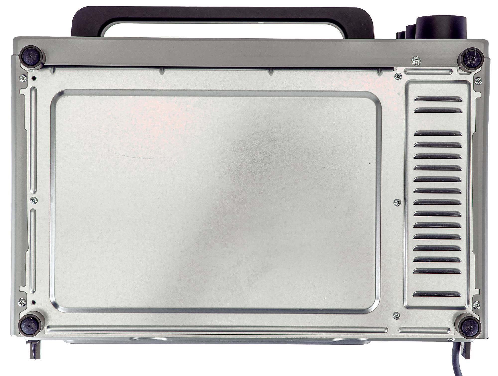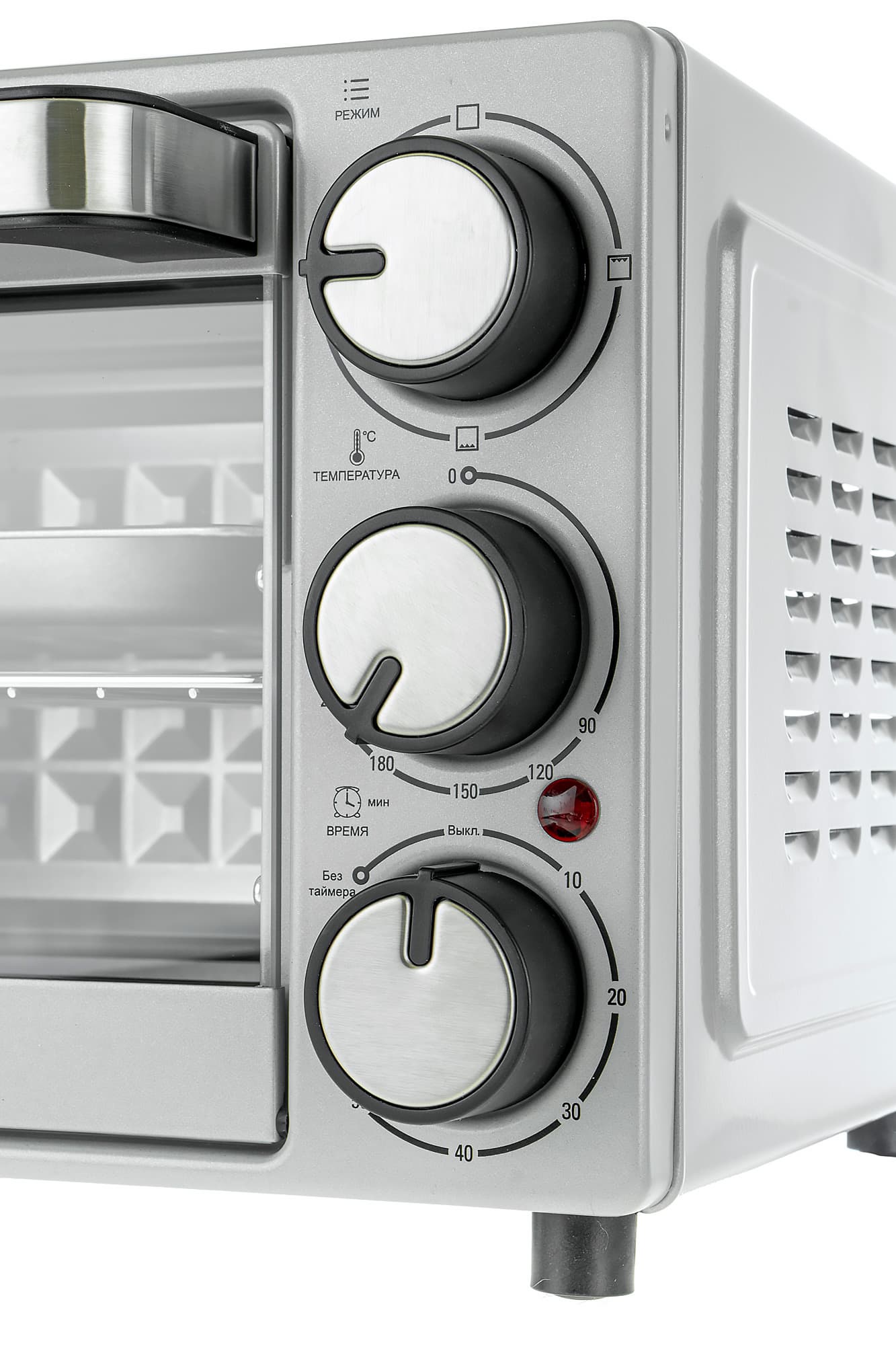 Ростер совсем небольшой, легкий и устойчивый. Корпус металлический, дверца из жаропрочного стекла. Никаких наклеек, рекламных слоганов и прочих украшательств — только небольшой логотип производителя снизу дверцы. Ручка для открывания большая, удобная, фиксирует дверцу в трех положениях: закрыто, открыто, полуоткрыто. Справа от дверцы большие поворотные переключатели: таймер, переключатель температуры и переключатель режима работы. Рядом с ними красный индикатор включенного состояния.