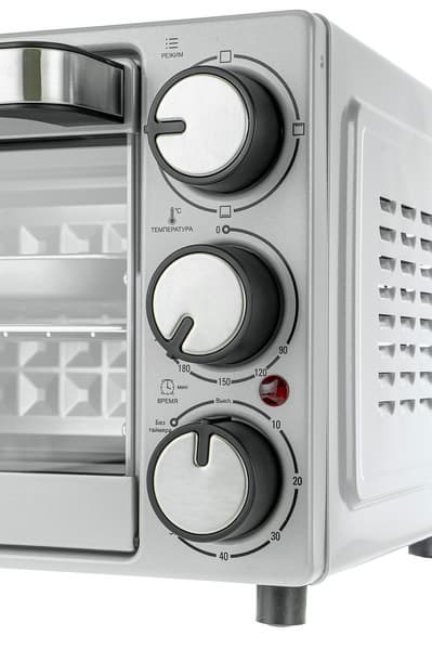 Средний переключатель устанавливает температуру в диапазоне от 90 до 230 °C. Нижний — является таймером и выключателем одновременно. Печь не включает нагрев, пока таймер не переведен в положение «без таймера» или на нем не выставлено время, по окончании времени таймера раздается звуковой сигнал и нагрев прекращается. Максимальное время работы таймера составляет 60 минут.