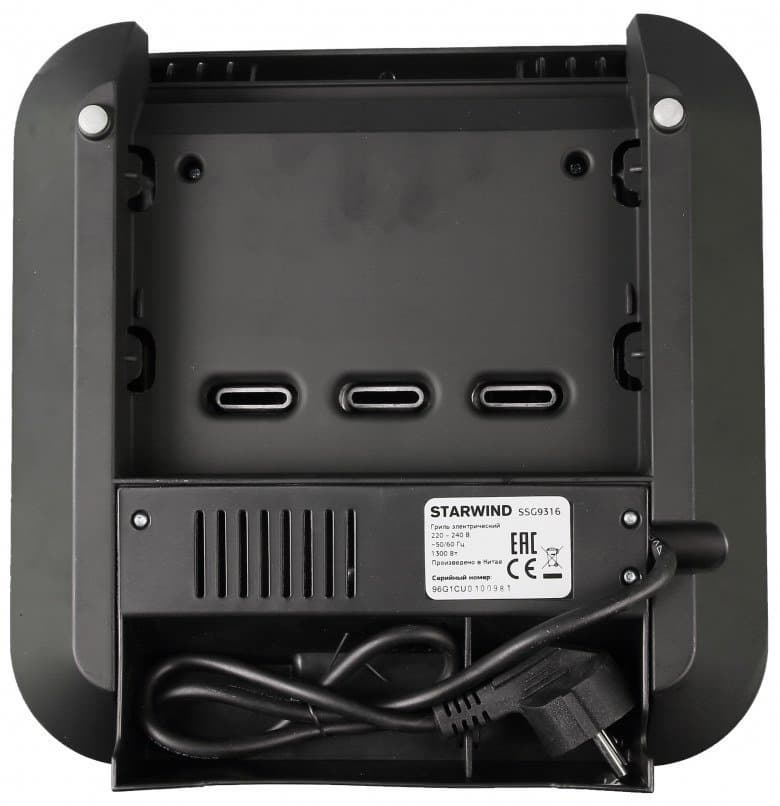 Starwind SSG9316 удачно сочетает в себе низкую цену, действительно стильный дизайн, быстрый нагрев и продуманную эргономику. Смелый отказ от громоздкой ручки позволил сделать компактный прибор с рабочим антипригарным покрытием. Еще более смелое решение убрать регулировку температуры мы считаем оправданным, так как покупатель бюджетного гриля вряд ли будет стоять с пирометром, выверяя температуру до градуса, дабы соблюсти все тонкости рецепта.