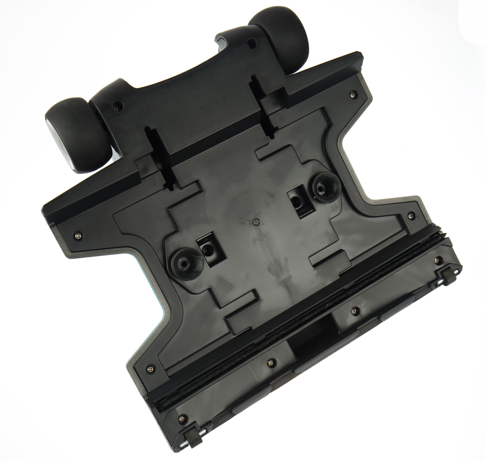 Насадка опирается на два колеса, покрытых резиной. На них приходится основной вес всего пылесоса при уборке и хранении. Для облегчения скольжения по полу в передней части предусмотрены два небольших дополнительных ролика. Удобному движению по твердым покрытиям способствует также щетка между отверстием для всасывания воздуха и тряпкой для влажной уборки.