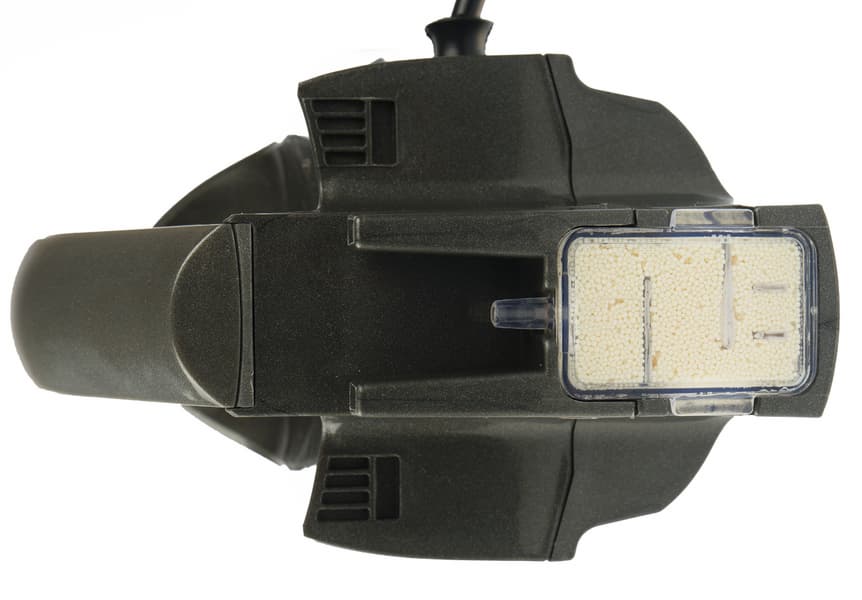 Прежде чем попасть в нагревательный бачок парогенератора, вода из резервуара проходит через сменный смягчающий фильтр в основании прибора.