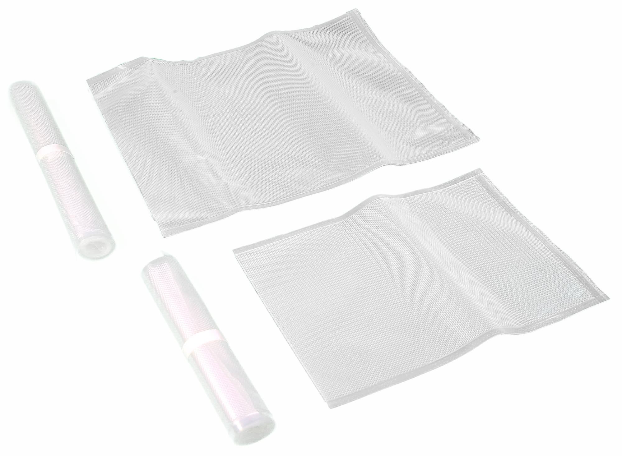 Прибором комплектуется начальный набором упаковочных материалов: пакеты и два рулона пленки разной ширины. Для знакомства и первых опытов вакуумирования данное количество представляется более чем достаточным. Ну а потом, конечно, придется докупать упаковочный материал отдельно. Хорошо то, что в ходе первых опытов пользователь уже поймет, какую именно форму он предпочитает — отдельные пакеты или рулон, и какая ширина является предпочтительной для его нужд.