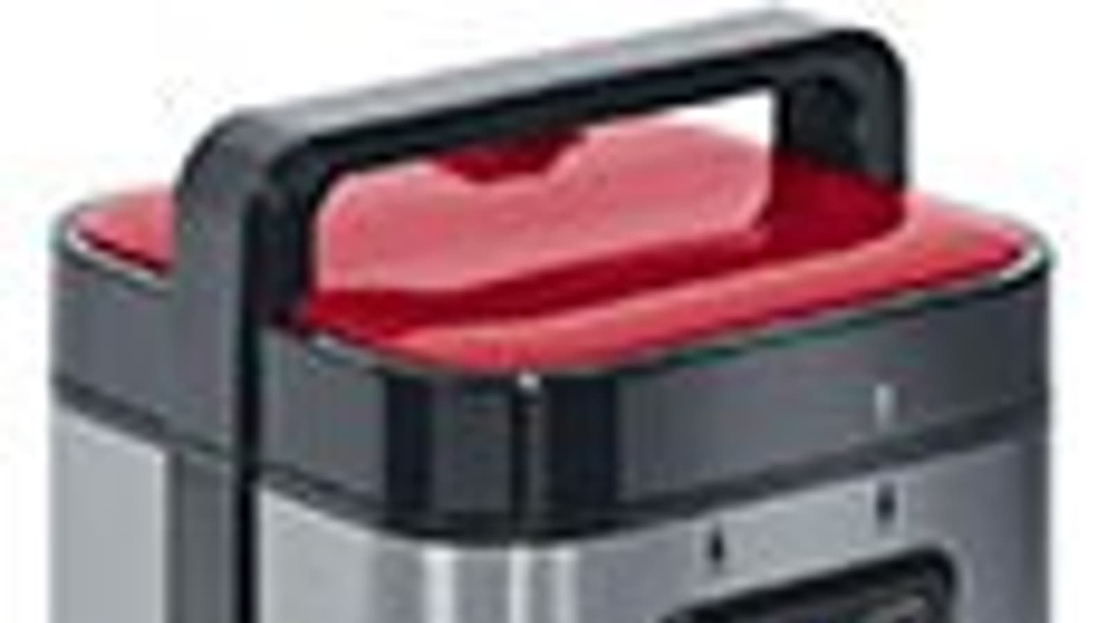 Ее ласково называют на форумах «кубик». Довольно андрогинная модель, если пускаться в привычные теме метафорические высказывания о «хозяйке на кухне». Конструкция внушительная, но довольно лаконичная, без виньеток вроде обтекаемости и крашеного в бодрые цвета пластика. Квадратная форма со скругленными углами, красный верх, стальной низ — такую мультиварку, наверное, одобрил бы даже Ким Чен Ын. В общем, у нее не забалуешь.