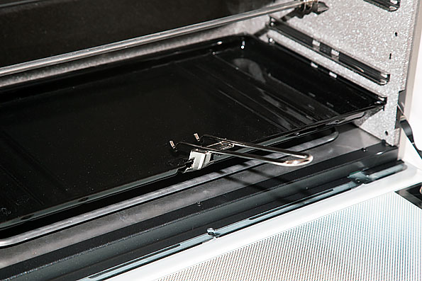 Качество изготовления аксессуаров оказалось достойно отдельной похвалы: все удобно, без проблем вставляется в соответствующие пазы и вынимается из них, не коробится при нагревании. Особенно впечатлила ручка для противней — по внешнему виду сходу и не скажешь, что этот небольшой элемент исполнен настолько удачно, что запросто позволяет оперировать противнем с лежащим на нем блюдом.