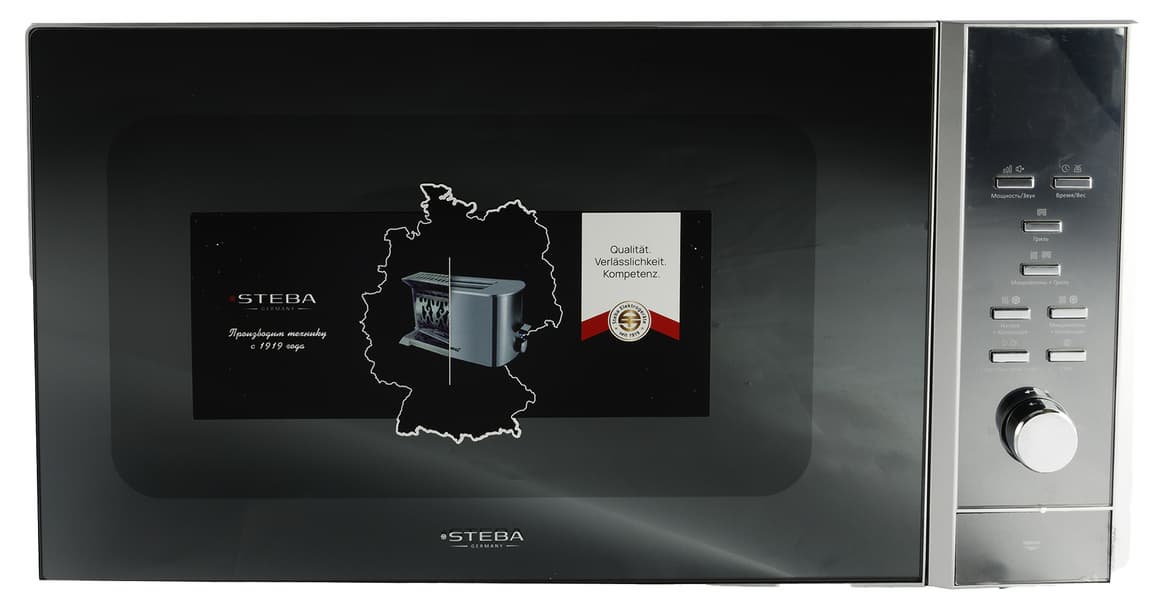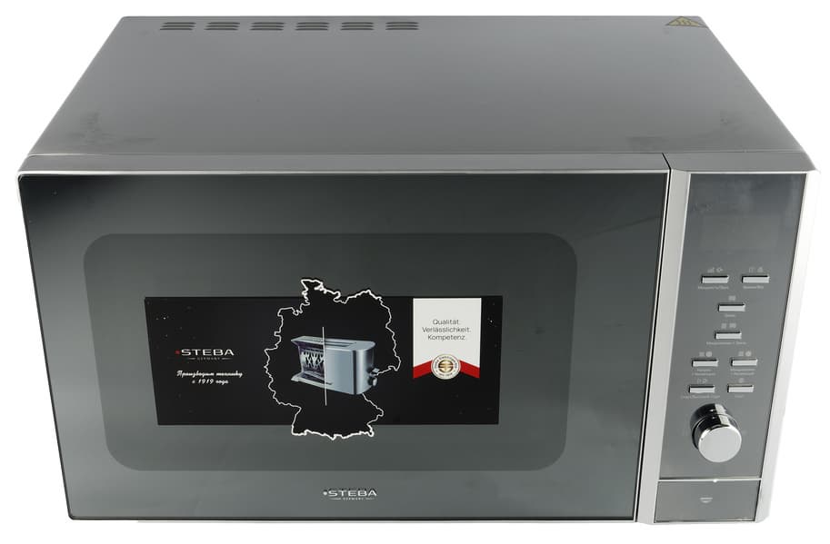 Стальной корпус Steba MIC 3010 выполнен в сером цвете. Лицевая панель — полностью из закаленного стекла с зеркальным покрытием. Дизайн устройства подчеркнуто строгий и минималистичный.