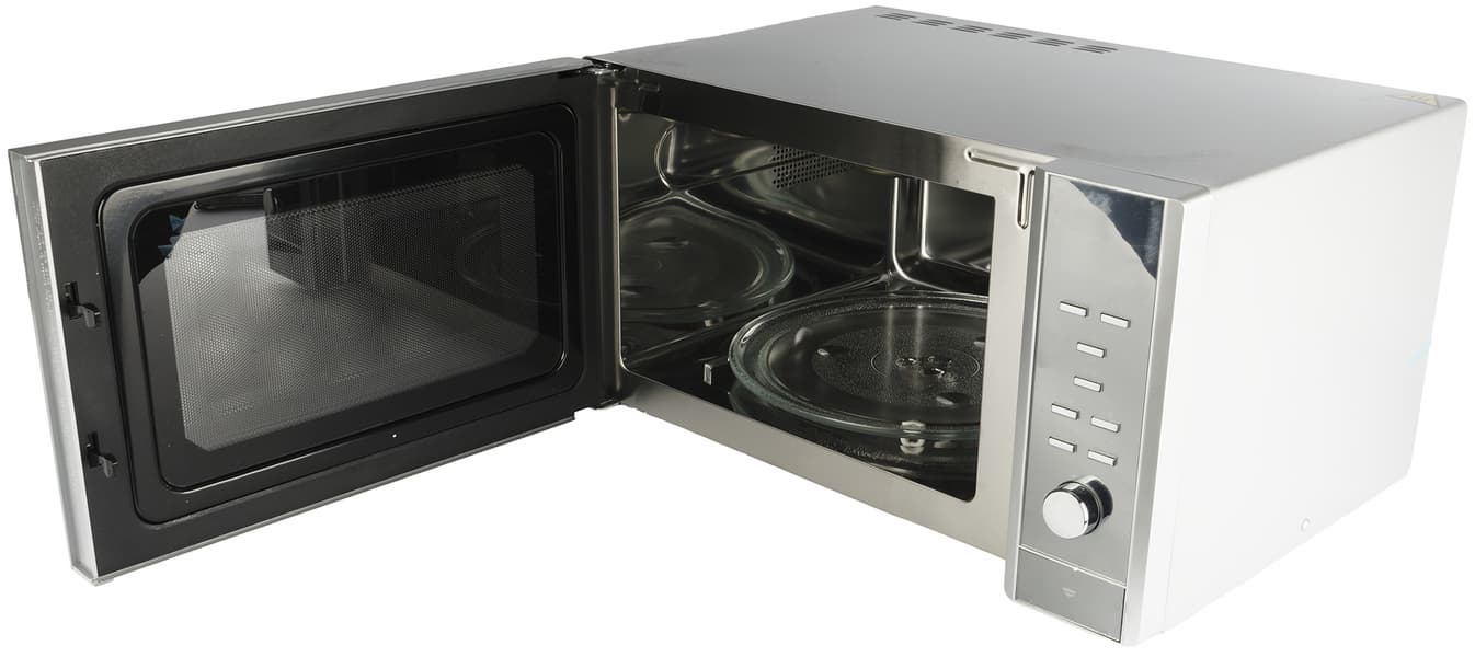 В режиме ожидания микроволновая печь потребляет 0,4 Вт, а с открытой дверцей и горящей подсветкой камеры — около 25 Вт. Максимальная зафиксированная нами мощность составила 2057 Вт в режиме Микроволны+Гриль. Максимальная мощность в режиме Микроволны составила 1336 Вт.