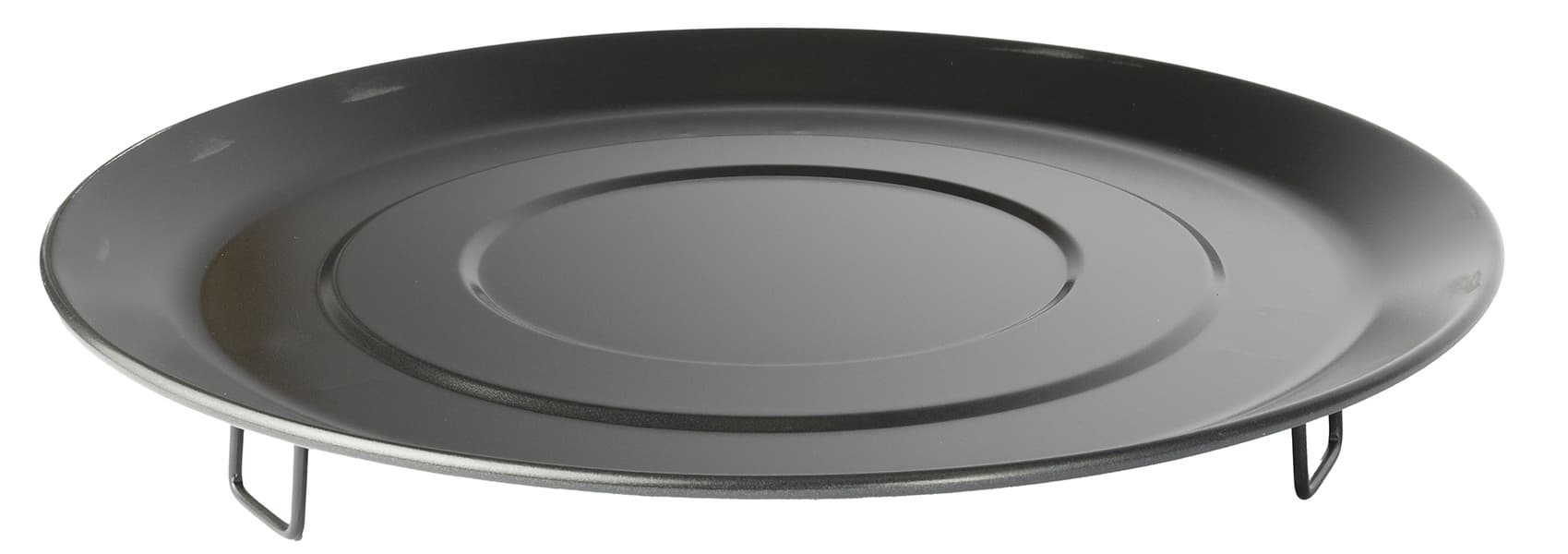 На нее можно установить противень в виде большой удобной тарелки на ножках. Тарелка имеет антипригарное покрытие.