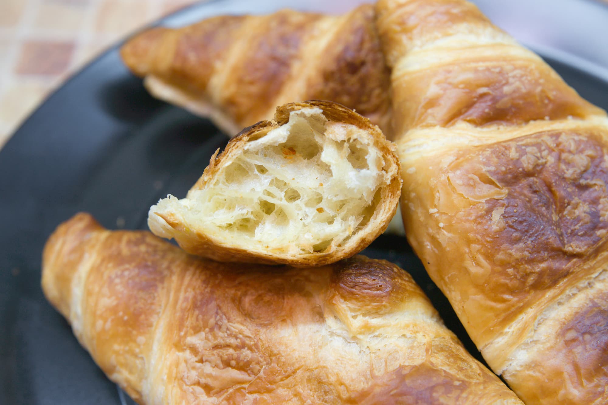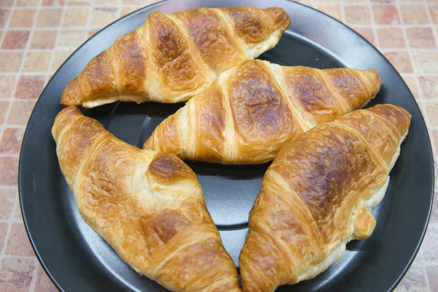 Через 10 минут мы получили готовые круассаны. Они хорошо подрумянились со всех сторон и отлично пропеклись внутри.