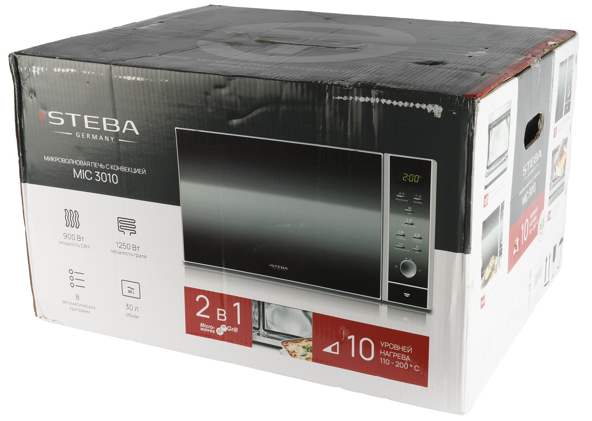 Микроволновая печь Steba MIC 3010 снабжена наиболее востребованным набором функций из всех возможных: микроволны, гриль и конвекция. Устройство работает в этих режимах или в паре комбинированных, где в разной пропорции сочетаются микроволны с грилем, микроволны с конвекцией и обычный нагрев с конвекцией.
