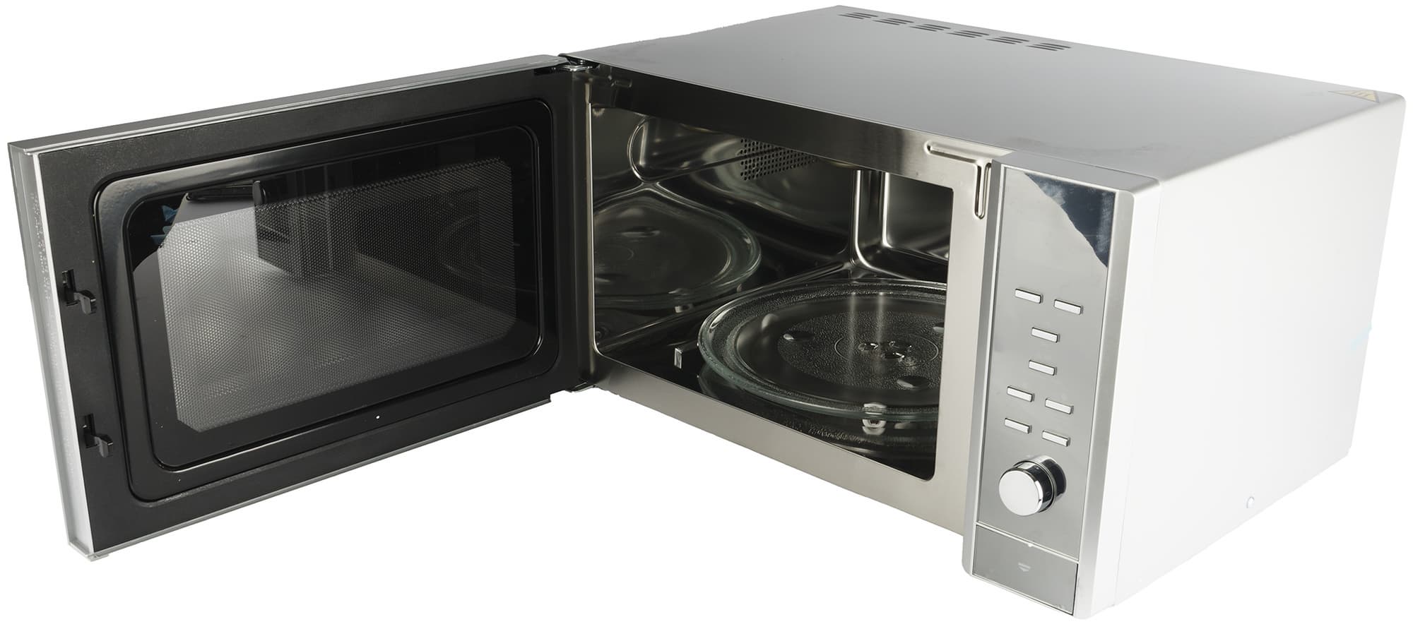 По размеру микроволновая печь больше стандартной. Объем рабочей камеры составляет 30 литров. Внутреннее пространство покрыто нержавеющей сталью. На дне — углубление для установки роликового кольца и стеклянной подставки диаметром 31,5 см.