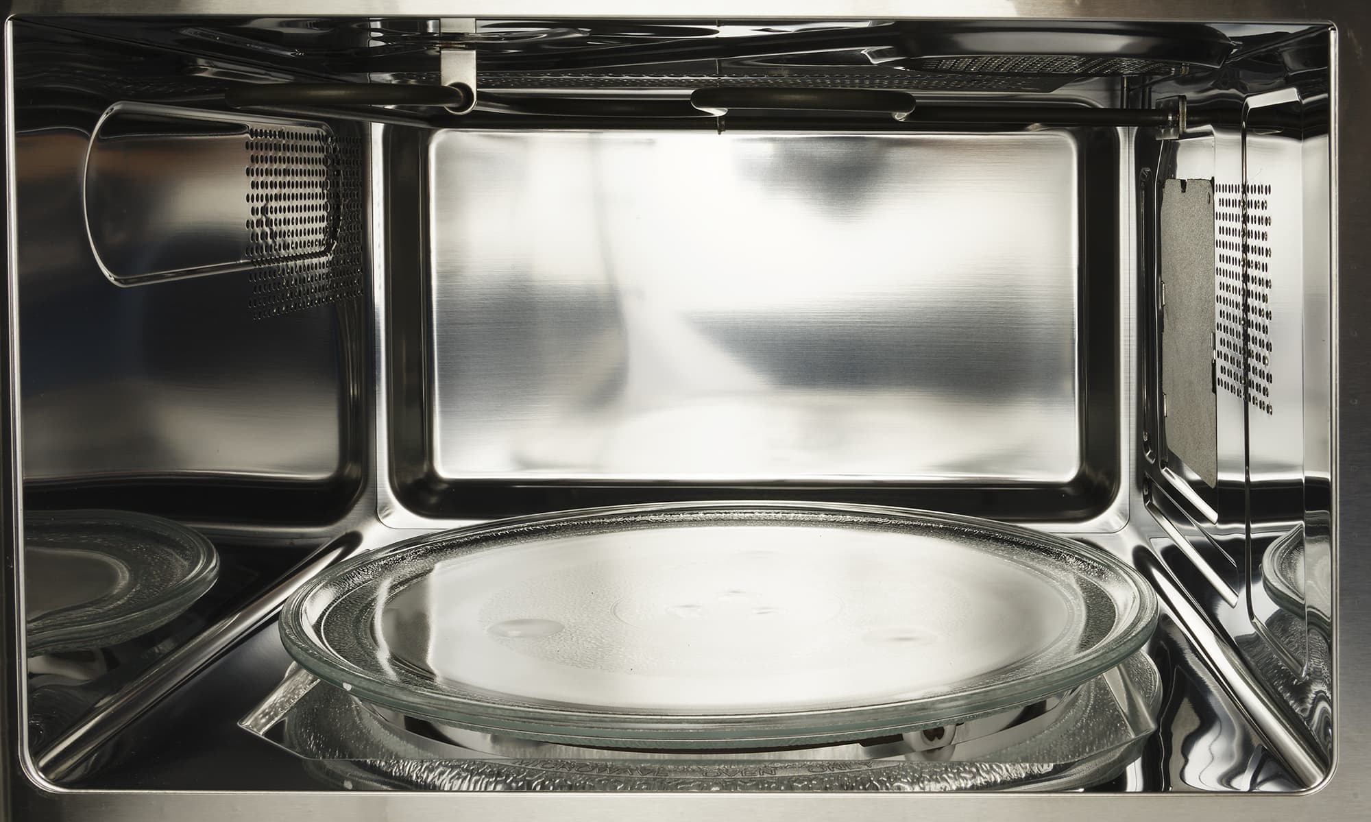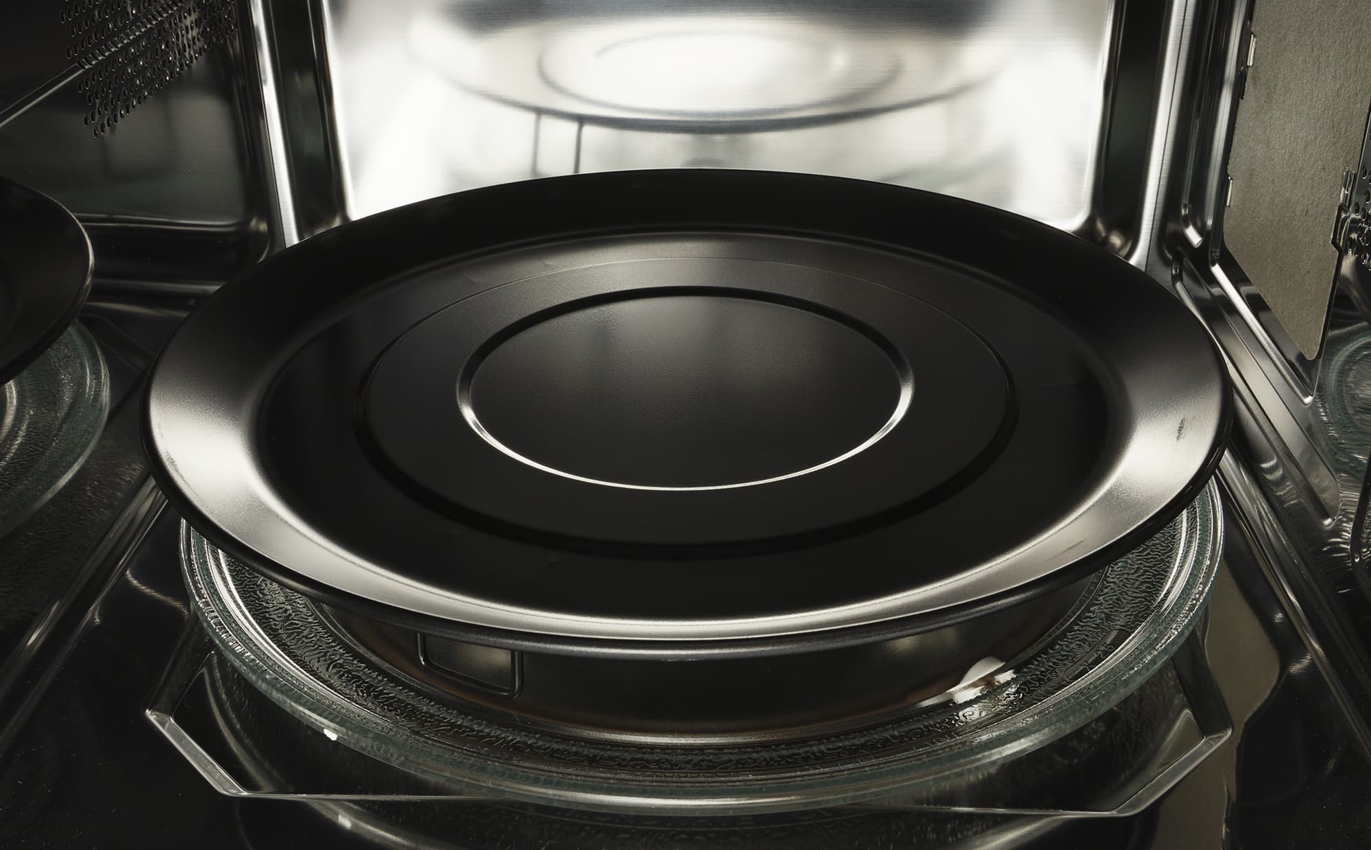 Перед началом эксплуатации мы протерли внешние поверхности корпуса, рабочую камеру и дверцу слегка влажной мягкой тканью. Стеклянный поддон и блюдо-противень помыли с простым моющим средством под проточной водой.