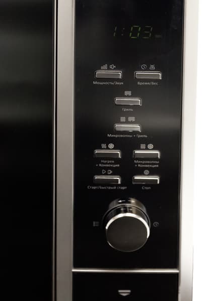 Кроме вышеперечисленного в микроволновке предусмотрены: блокировка панели, настройка часов в 12- или 24-часовом формате, а также отключение звуковых сигналов. Есть также защита от перегрева, переохлаждения и неисправности датчика. При этих неполадках на экране появляется предупреждающая надпись в виде буквенно-цифрового сочетания и раздается звуковой сигнал. Система переходит в обычный режим работы при нажатии кнопки Стоп.