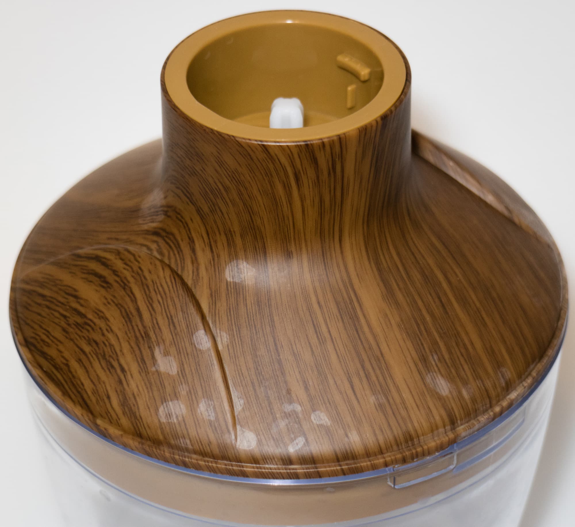 Как упоминалось выше, все детали блендера можно мыть в посудомоечной машине. Однако мойка в машине не прошла бесследно для внешнего вида прибора. На фотографии можно увидеть, что на внешней стороне крышки чаши для измельчения появились более светлые по сравнению с остальной поверхностью пятна.