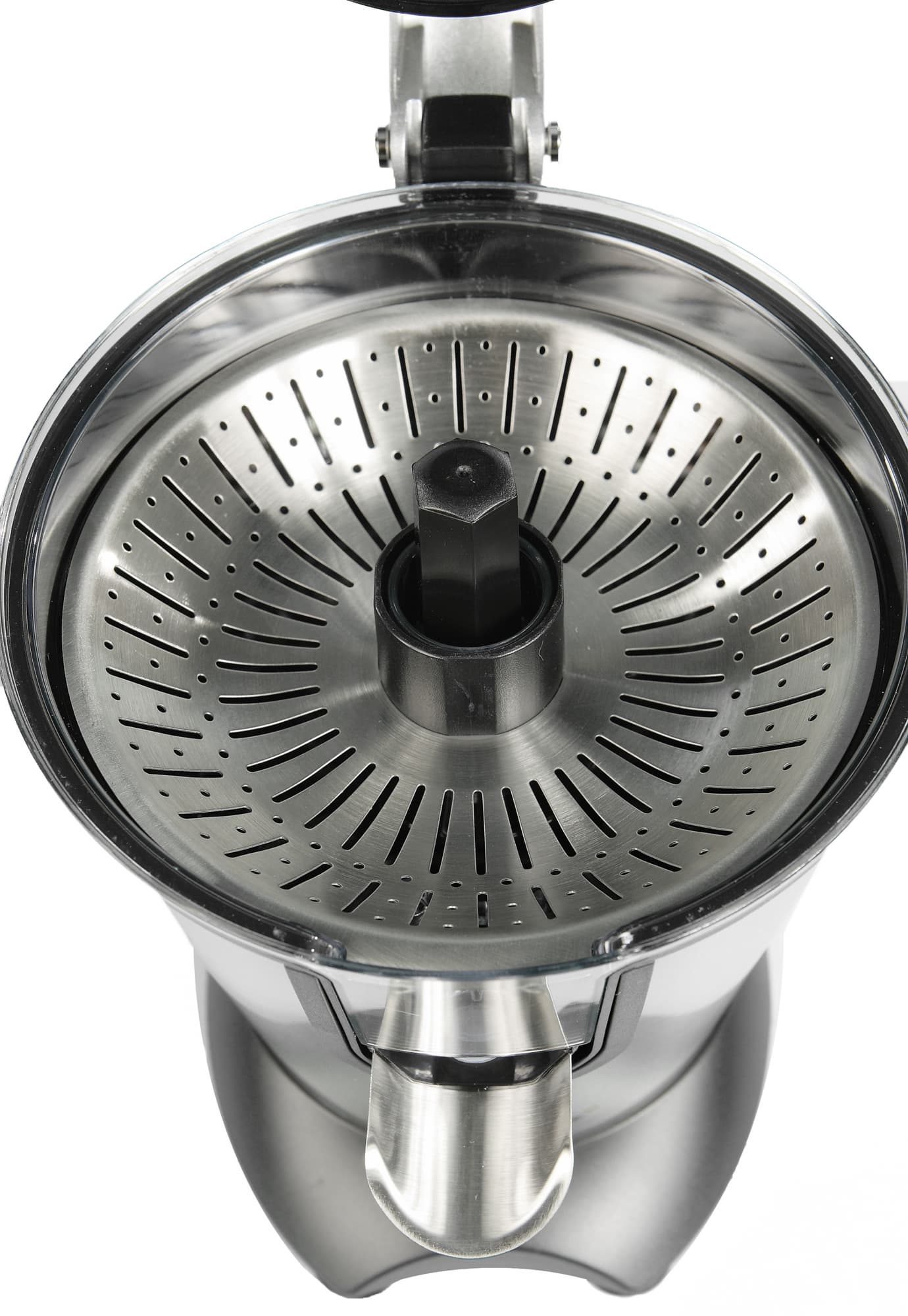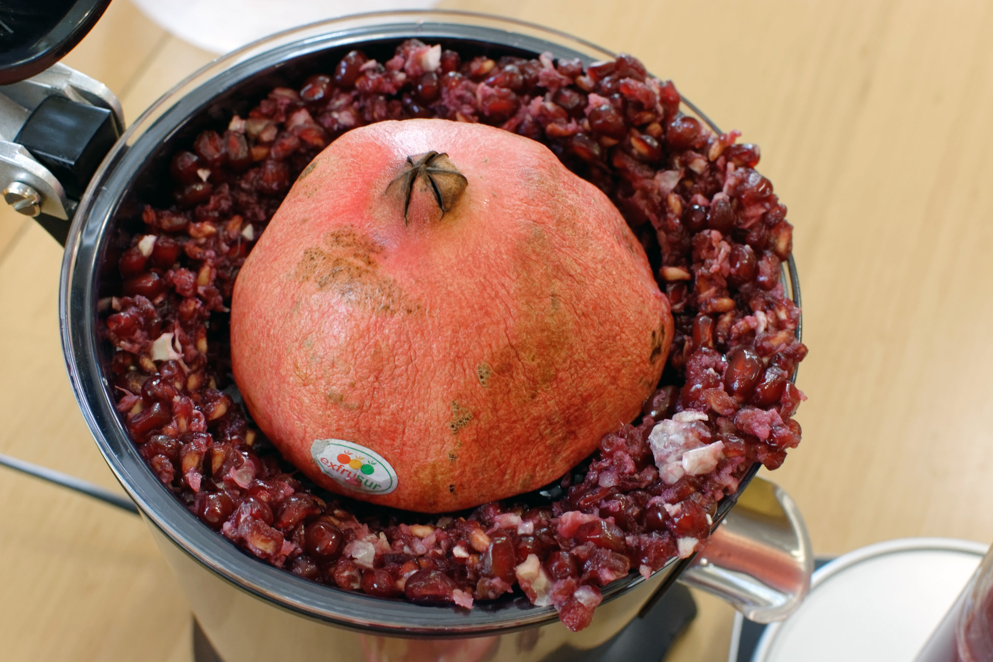 Основная проблема состоит в том, что гранатовые зерна не такие мягкие, как мякоть цитрусовых. Поэтому довольно большое количество зерен конус не успевает раздавить, а просто «выколупывает» из граната на фильтр, где они оказываются в роли отходов.