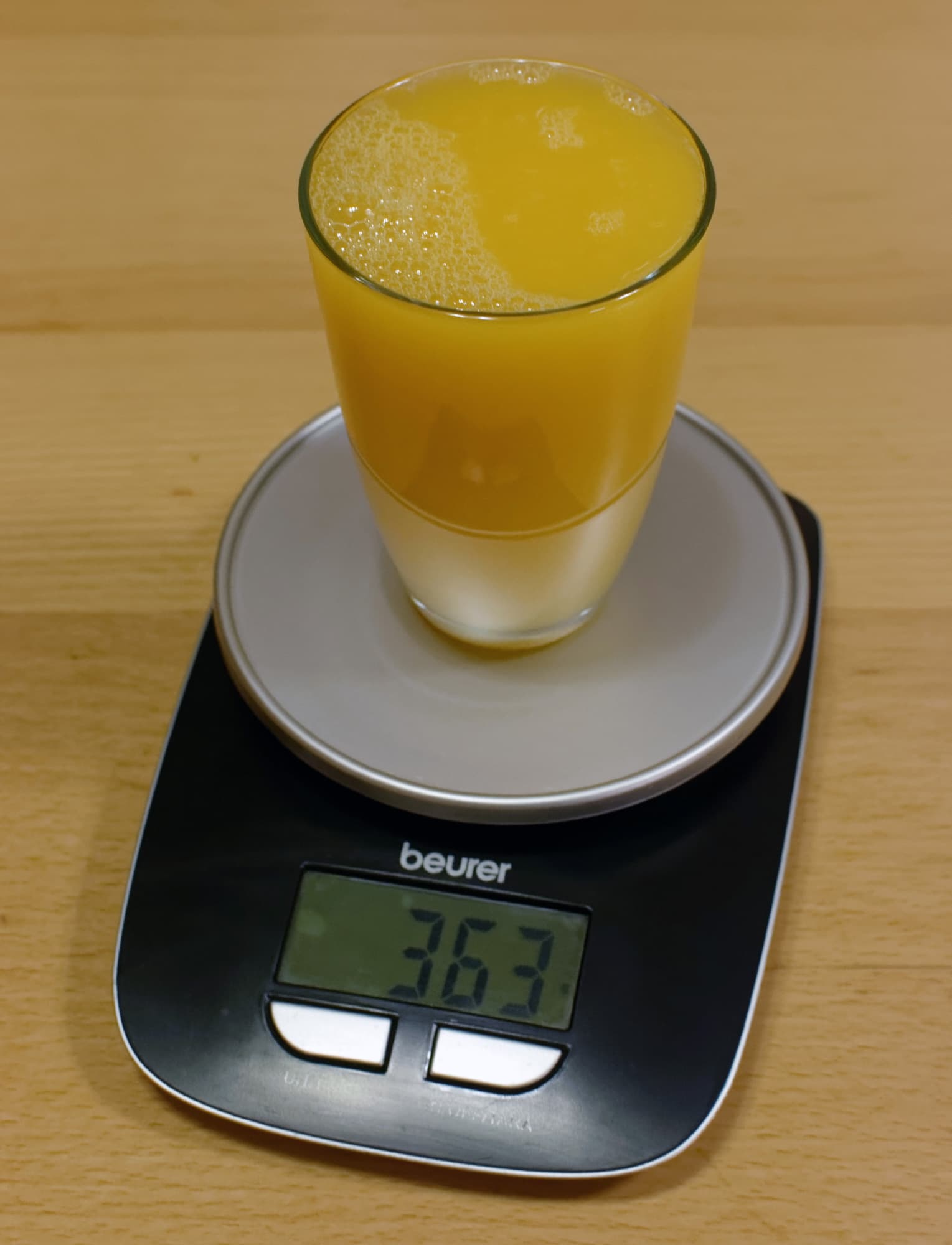 Но, к счастью, в кулинарии имеют значение не только количественные характеристики. Нас очень сильно заинтересовал тот момент, что соки из Steba ZP 2 и шнековой соковыжималки даже выглядели совершенно по-разному. Вот сок из соковыжималки для цитрусовых: