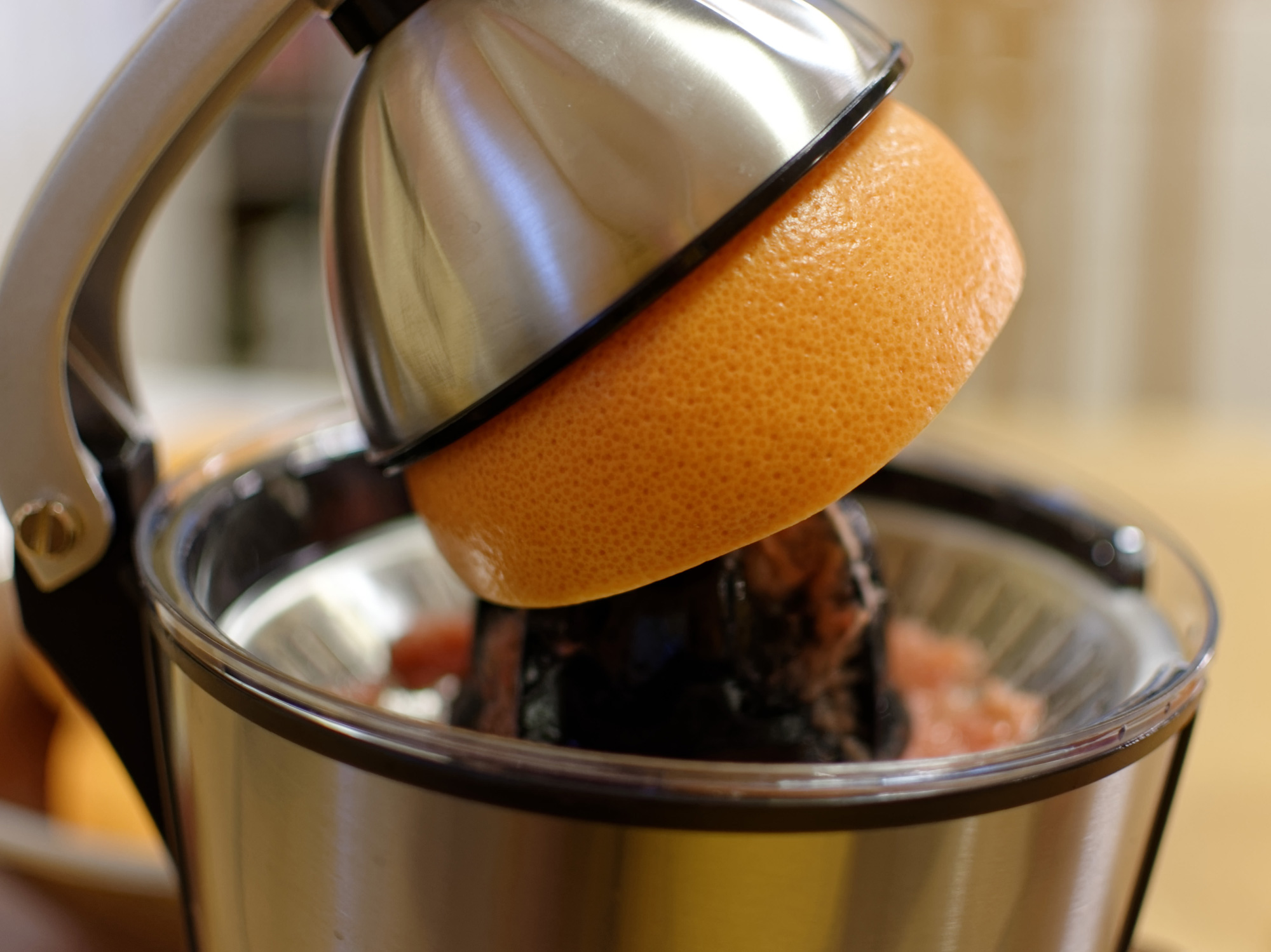 Мы решили не оригинальничать, а сделать все то, для чего обычно используют соковыжималки для цитрусовых: надавить апельсинового и грейпфрутового сока, выдавить парочку лимонов. Ну а напоследок все-таки не удержались и соригинальничали: попробовали давить гранат.