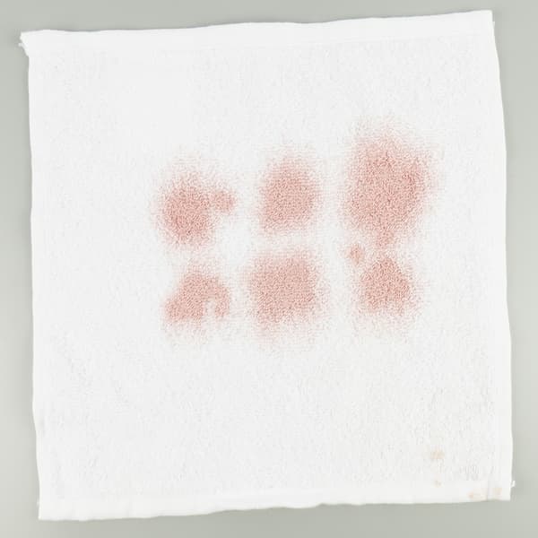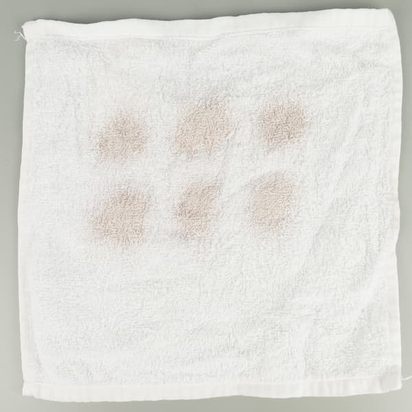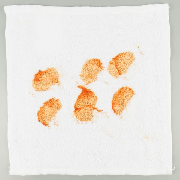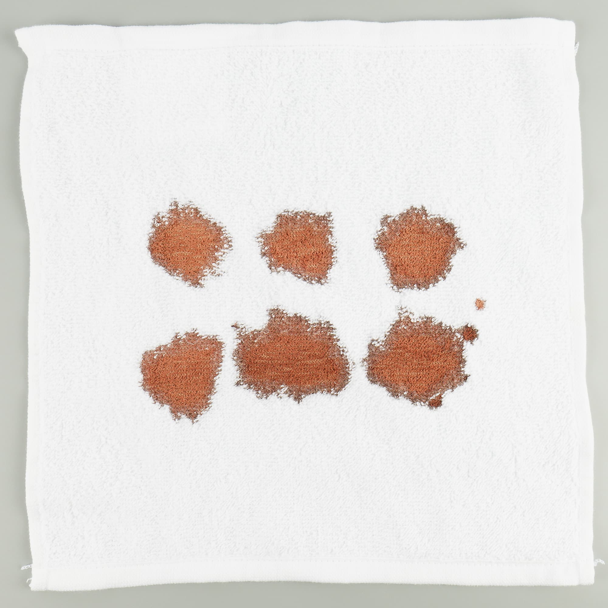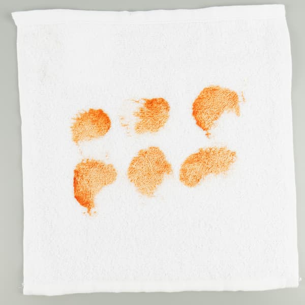 Чтобы посмотреть, можно ли улучшить результат предыдущего опыта, мы повторили наш эксперимент с теми же веществами и вторым комплектом белых махровых салфеток.