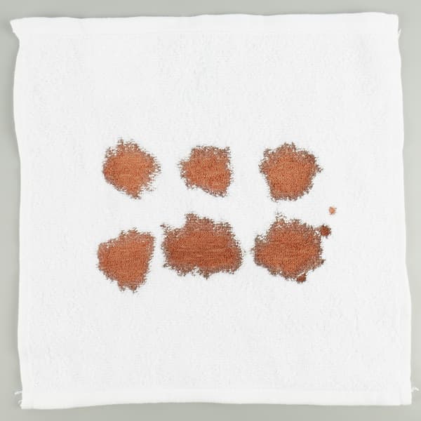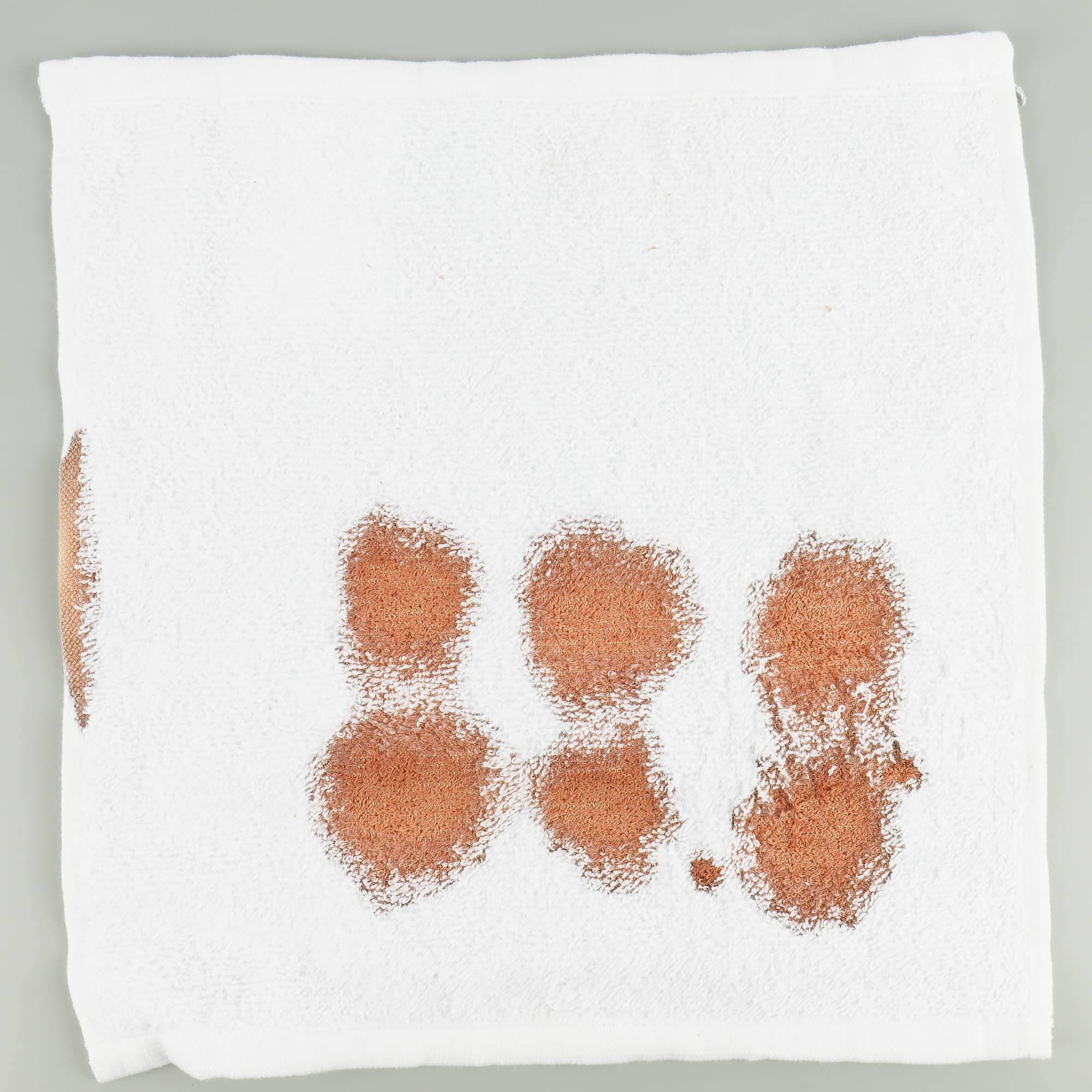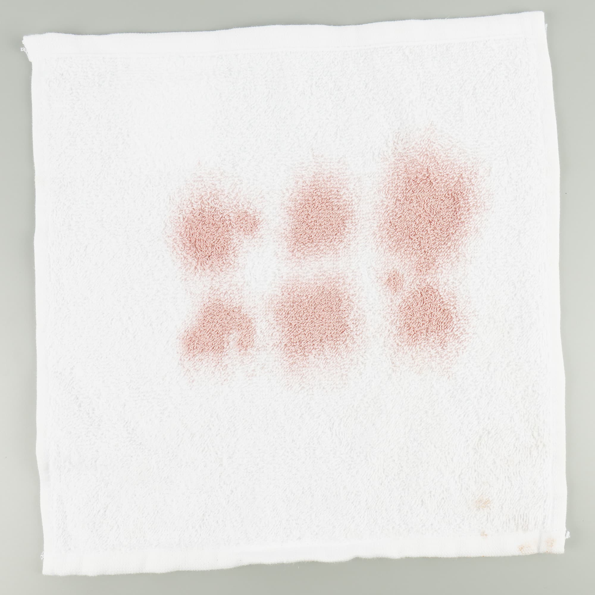 На каждое полотенце мы нанесли свое вещество: красное вино, соевый соус, кетчуп, кровь и какао.