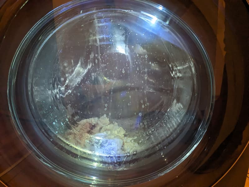 Чтобы полностью удалить пятна, оставшиеся от этого и предыдущего тестов, мы, как обычно, воспользовались отбеливателем и стиркой при максимальной (95 °C) температуре.