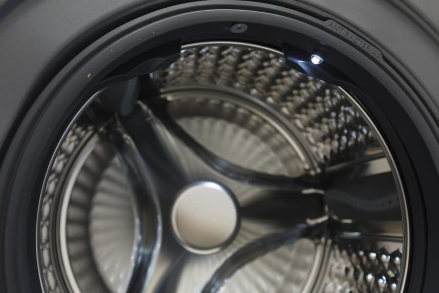 В верхней части кромки люка расположен яркий белый светодиод, подсвечивающий содержимое барабана. Дополнительное освещение не только поможет обнаружить в емкости забытый носок, но и позволит контролировать происходящее внутри при стирке: без него сквозь темное стекло почти ничего не видно.