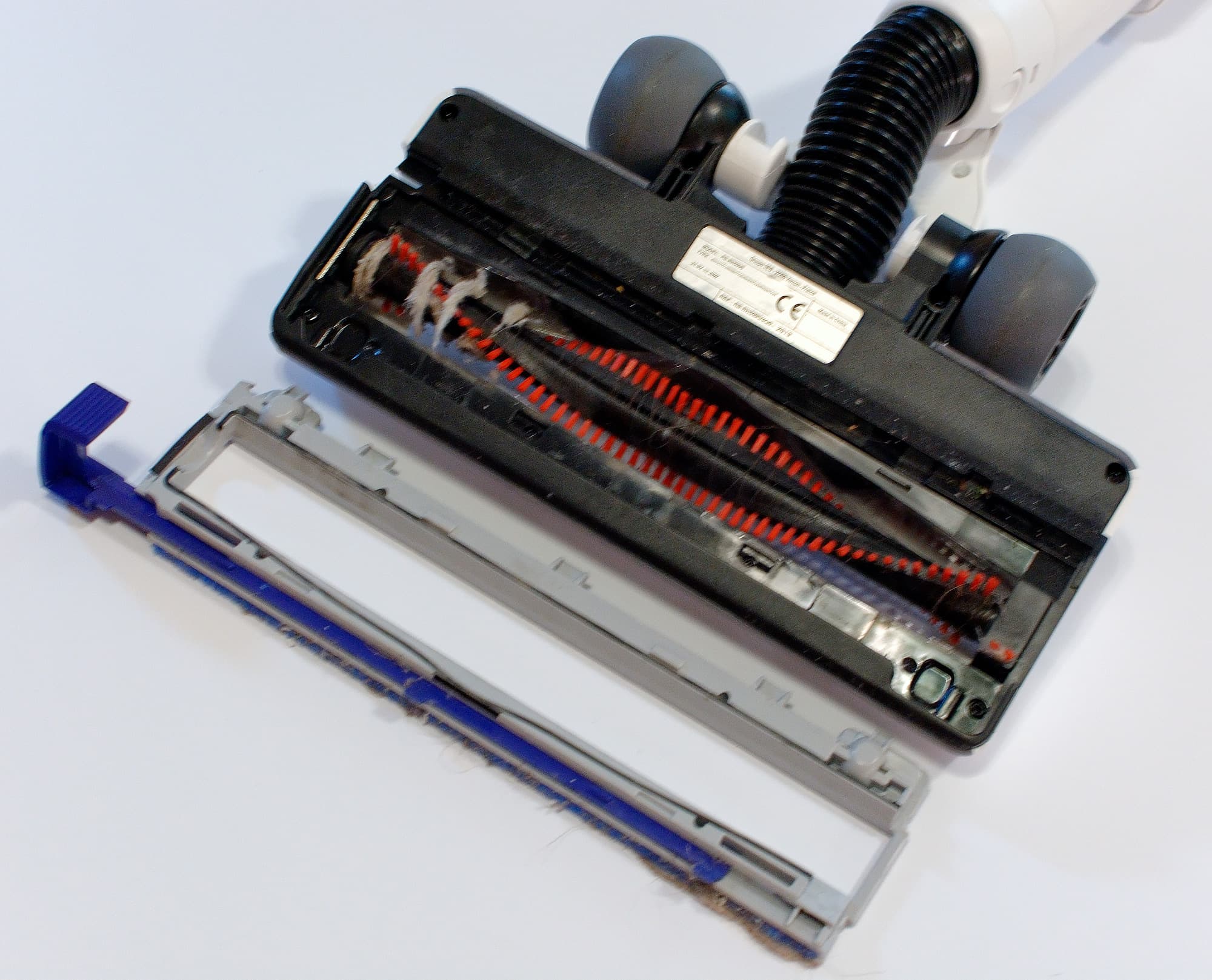 Узкая электрощетка предназначена для уборки шерсти животных на мягкой мебели и ковриках питомцев, ее общая ширина — 145 мм, ширина вращающейся части — 115 мм. Щетка разбирается так же, как большая, чуть ниже мы опишем процесс разборки.