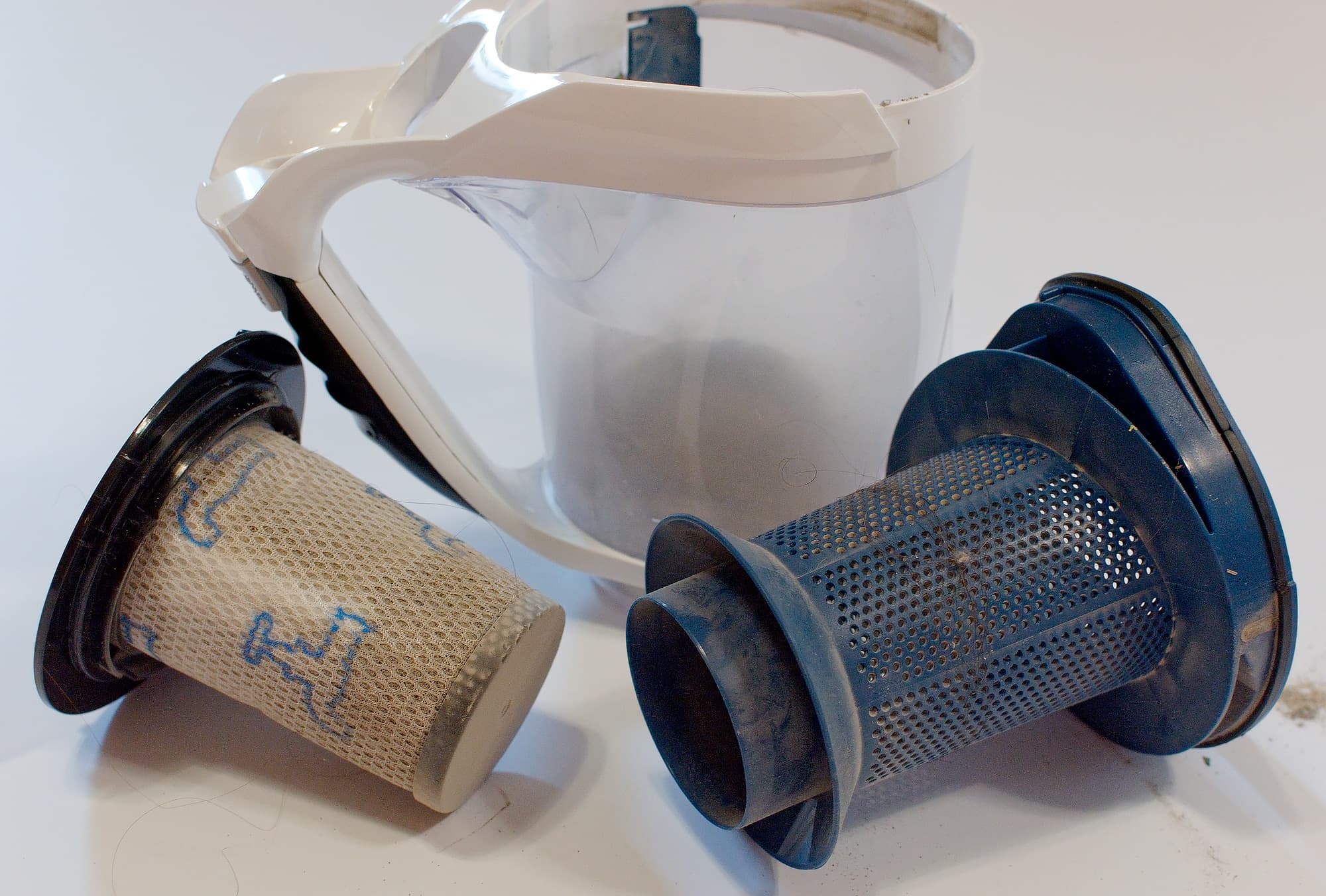 Уход за фильтрами сводится к полной разборке пылесборника, промыванию всех составляющих (в т. ч. фильтров) водой, высушиванию всех частей и сборке.
