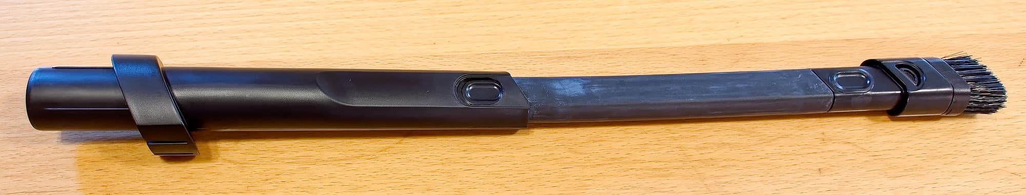 Щелевая на конце снабжена съемной щеточкой, но такое мы видели многократно. А вот что выделяет ее из общего ряда, так это то, что она во-первых раздвижная...