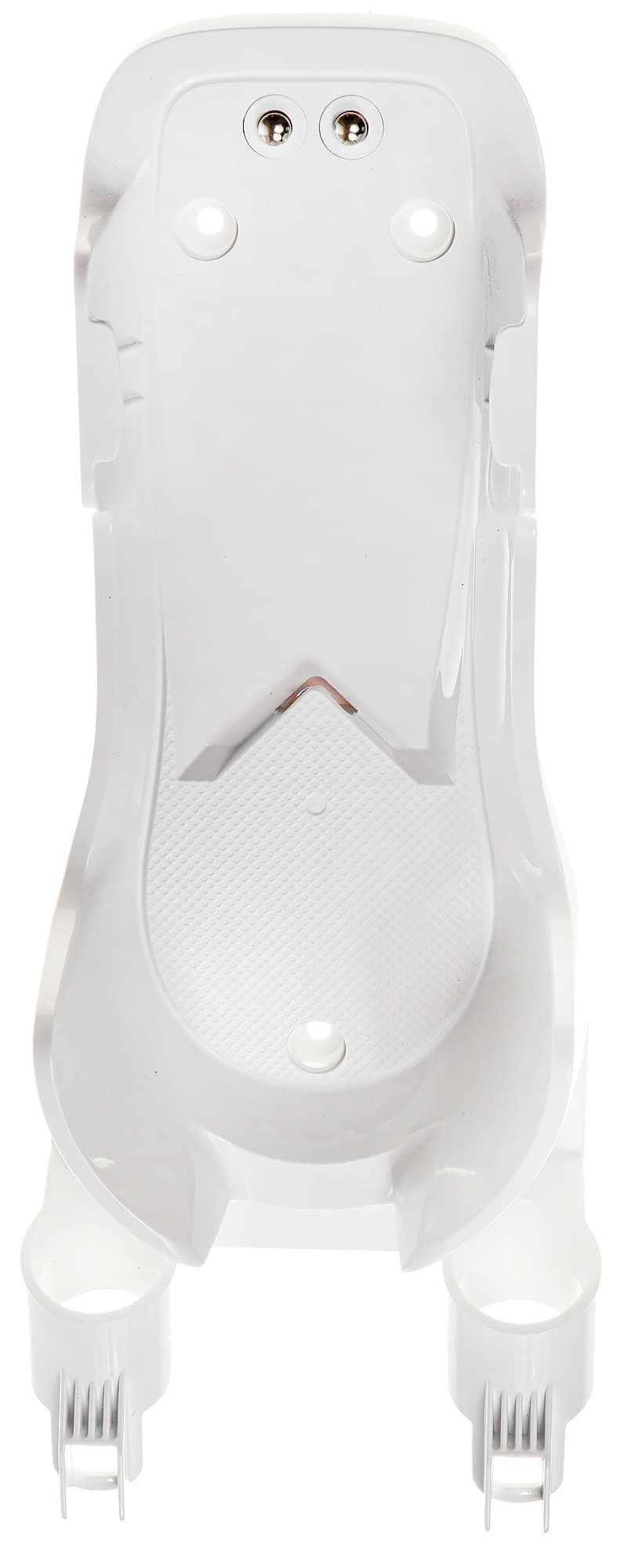 Контактная группа для зарядки пылесоса от базы расположена совсем в другом месте — на дне. При этой схеме зарядки провод от блока питания подключается к гнезду на базе, а пылесос начинает заряжаться автоматически, сразу после установки в базу.