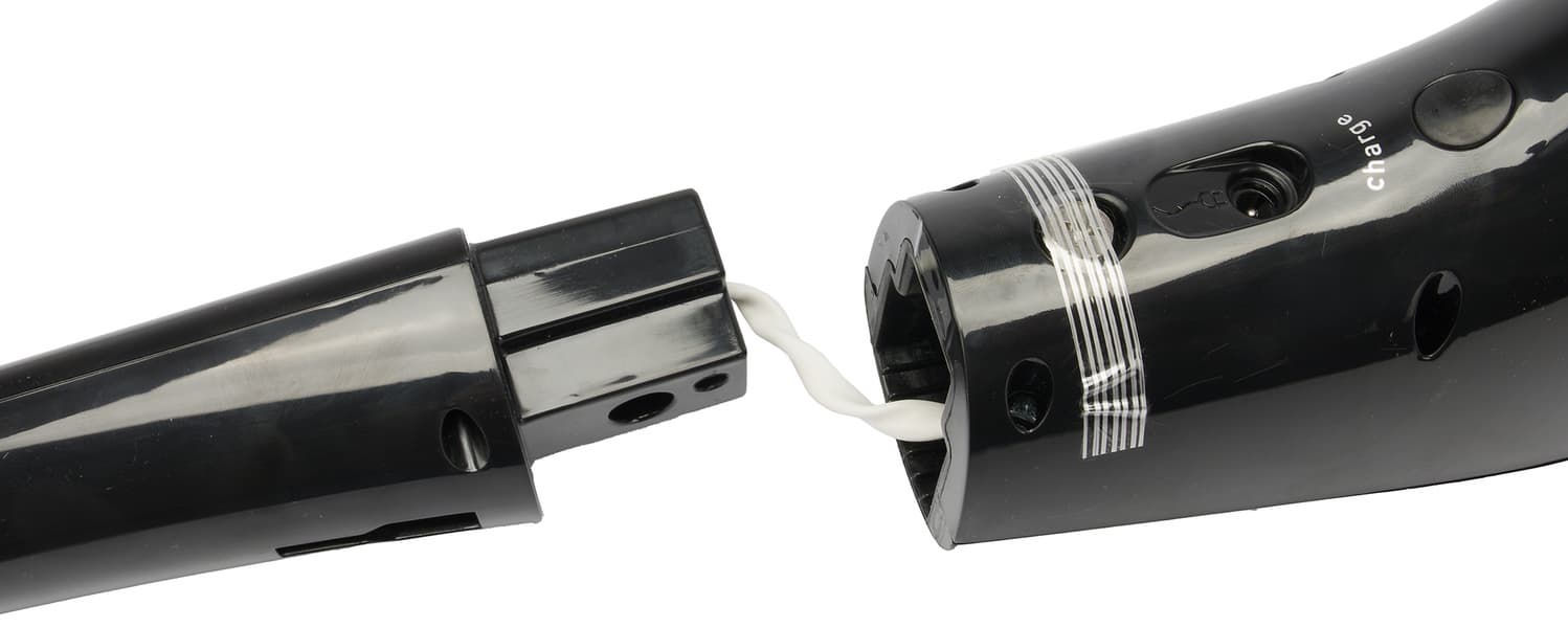 Моторный блок с мусоросборником и циклонным фильтром упакован отдельно от удлинительной ручки и соединяется с ней проводом.