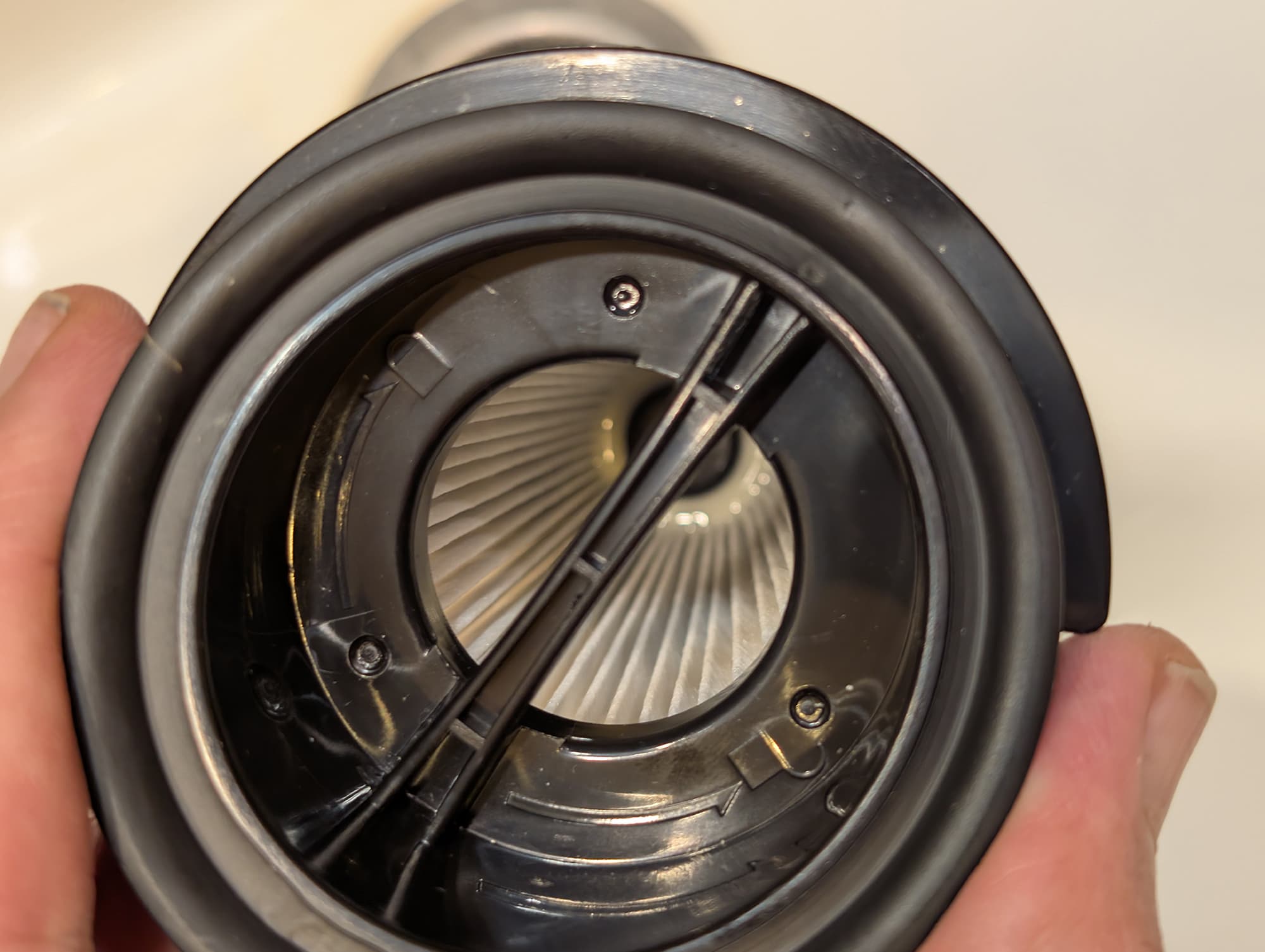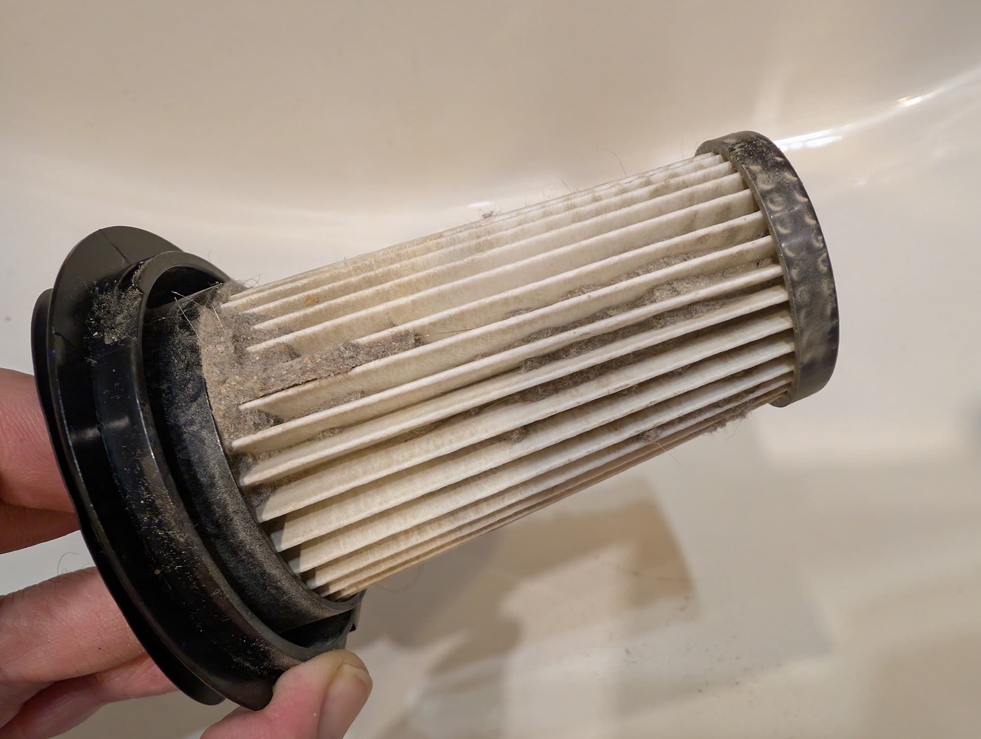 На коническом HEPA-фильтре остается довольно много пыли: здесь явно не помешал бы предварительный фильтрующий элемент.
