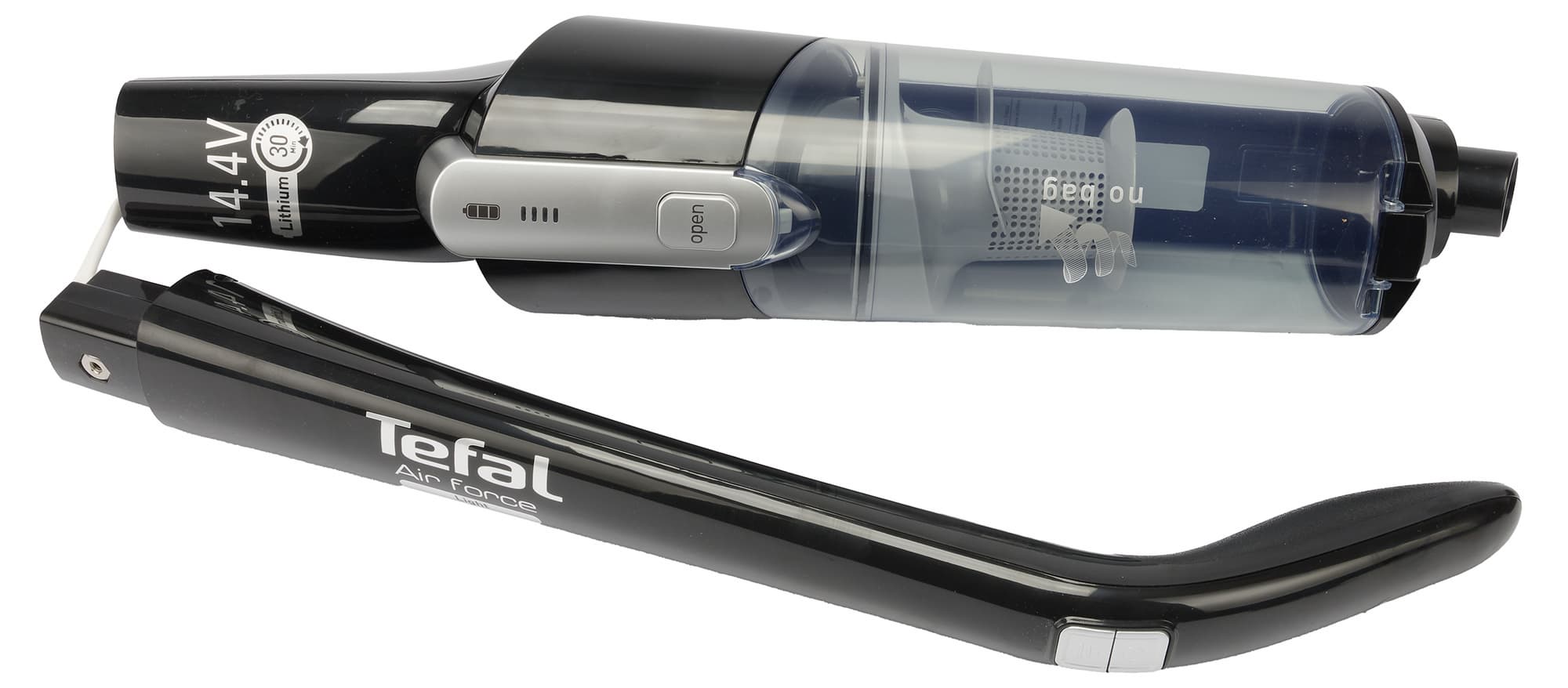 Дизайн устройства заставляет подозревать, что это модель примерно десятилетней давности. На это намекают компоновка, обтекаемые формы, модные в десятых годах, характерная слегка изогнутая ручка и ряд других технических решений. Невысокая мощность двигателя и небольшая емкость встроенного аккумулятора усиливают впечатление: в Tefal Air Force Light определенно использованы не самые современные компоненты.