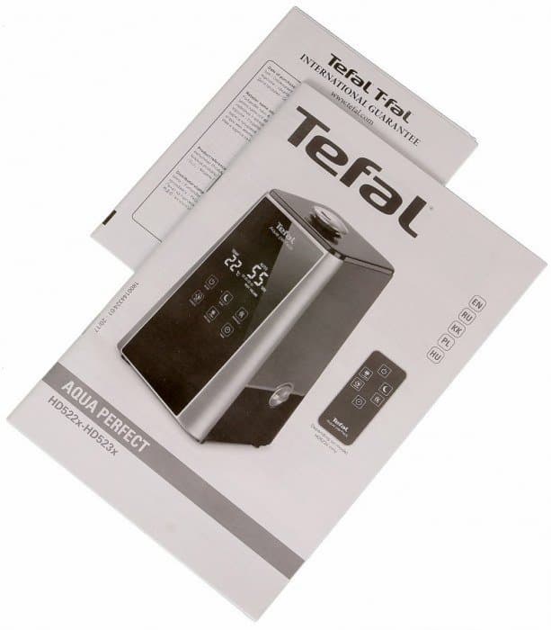 Коробка с увлажнителем сравнительно легкая и снабжена пластиковой ручкой, так что проблем с переноской не предвидится. Внутри прибор в сборе защищен картонными вставками и полиэтиленовой упаковкой и дополнен инструкцией, сертификатом соответствия и международной гарантией.