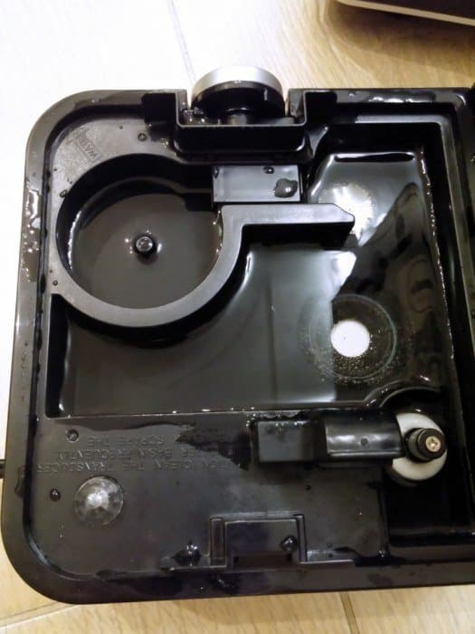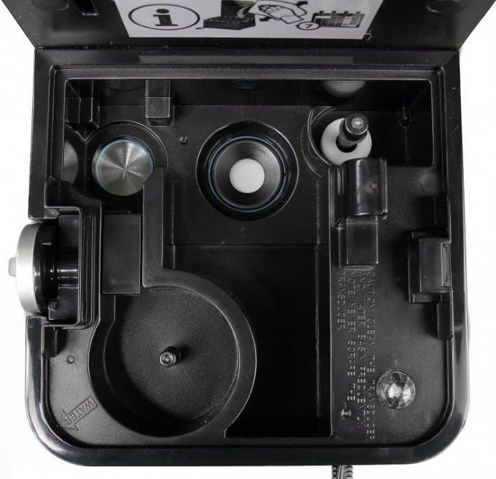 Инструкция переведена так, что легко запутаться, куда вода может попадать, а что нужно беречь от намокания. Например, базу прибора нельзя помещать в жидкость или под проточную воду, при этом каждые три дня нужно ее промывать чистой водой. Слегка напуганные строгими предписаниями, мы тщательно вытерли все капли воды на бачке после его заполнения и аккуратно установили на базу. Когда пришло время снова наполнить его, мы сняли резервуар и к своему ужасу обнаружили воду по всей базе. Потом стало понятно, что нужно соблюдать золотую середину: вода может подниматься примерно на 2 см в распылительной камере, но не должна попадать в отверстие для выхода воздуха. Забор воздуха производится по нижнему внешнему краю корпуса, поэтому базу нельзя помещать в воду целиком.