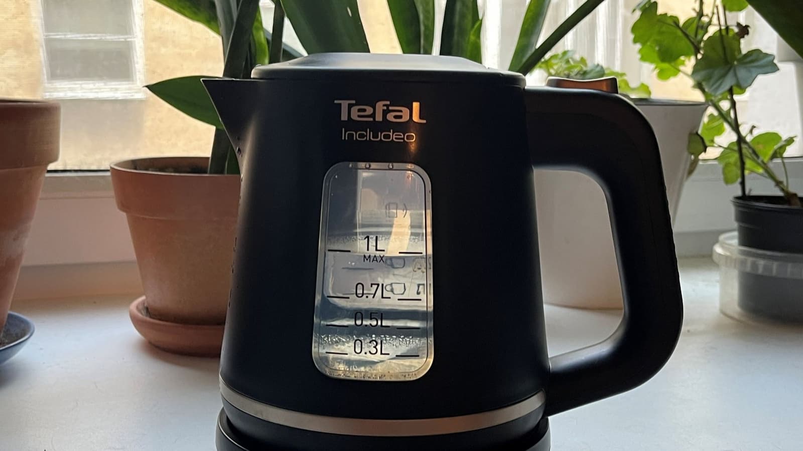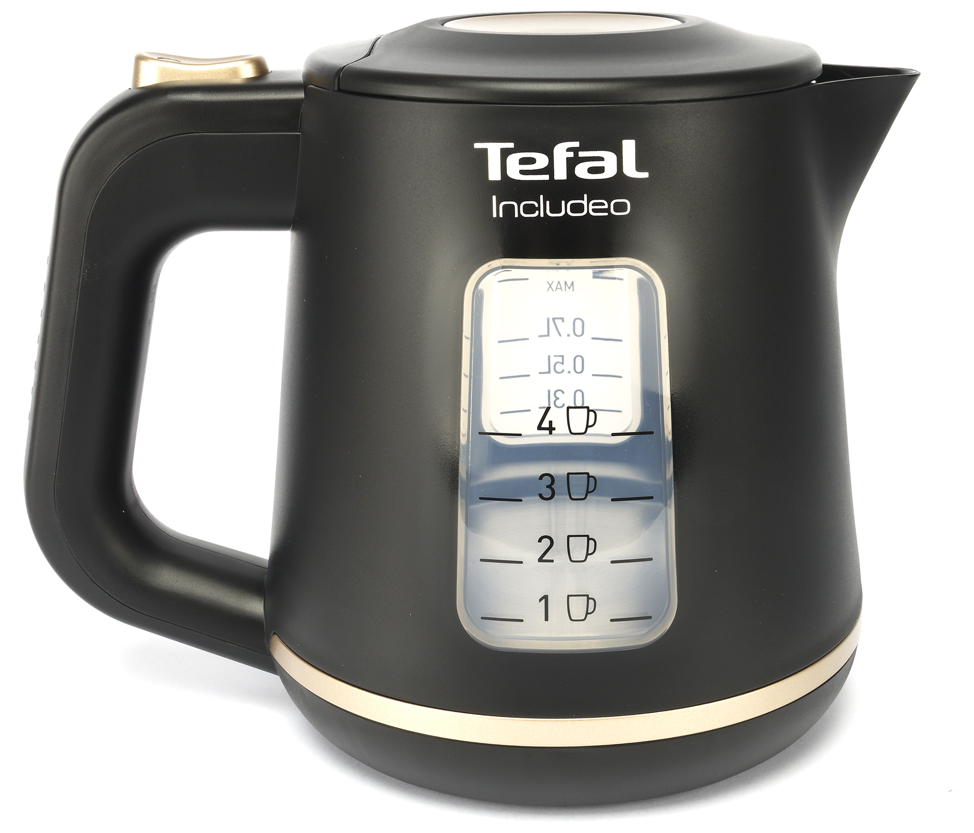 Tefal Includeo KI533811 — это небольшой и простой электрический чайник, имеющий два смотровых окошка и одну кнопку управления. Другими словами — мечта многих пользователей, уставших от перегруженных функциями устройств.
